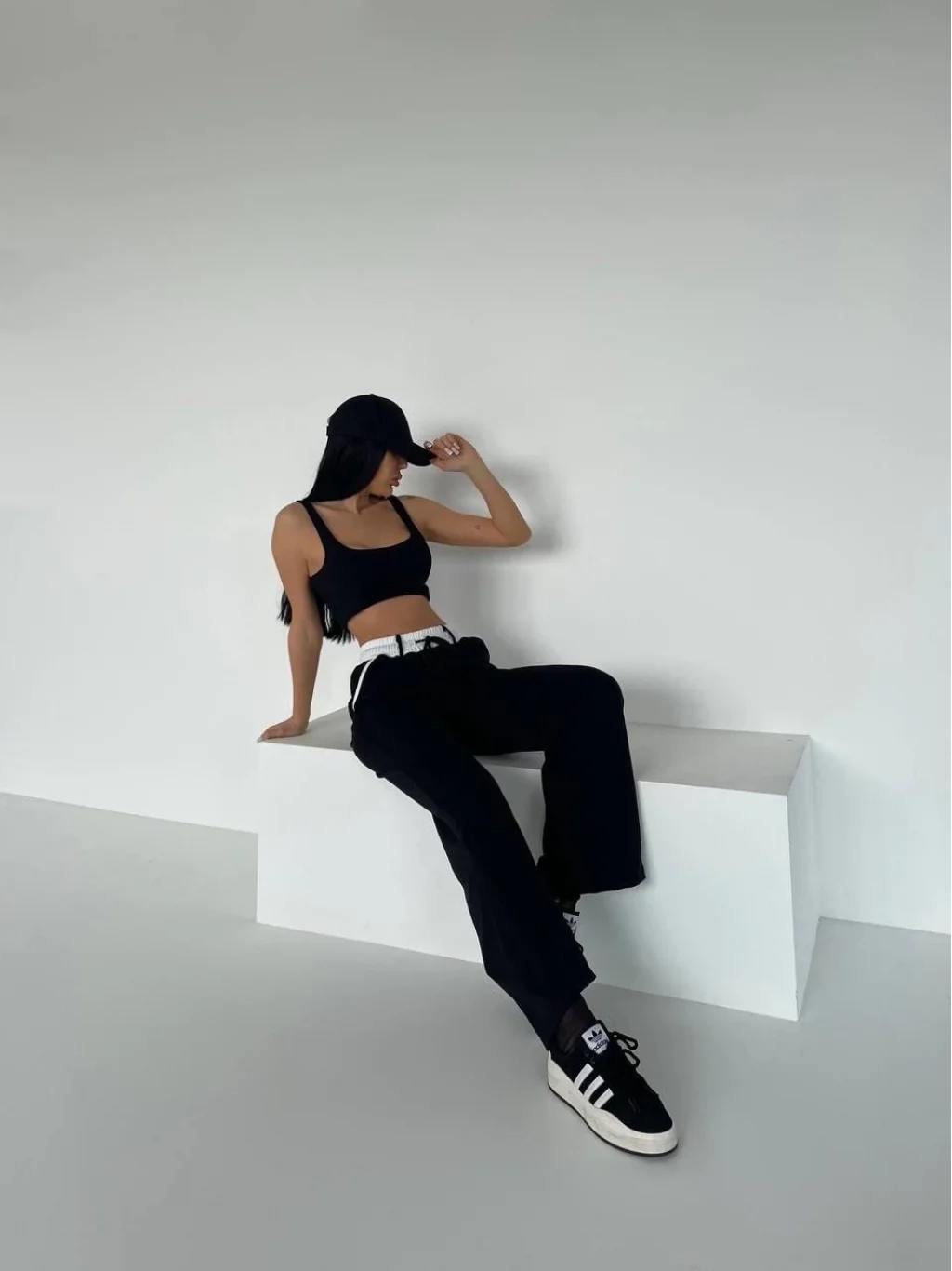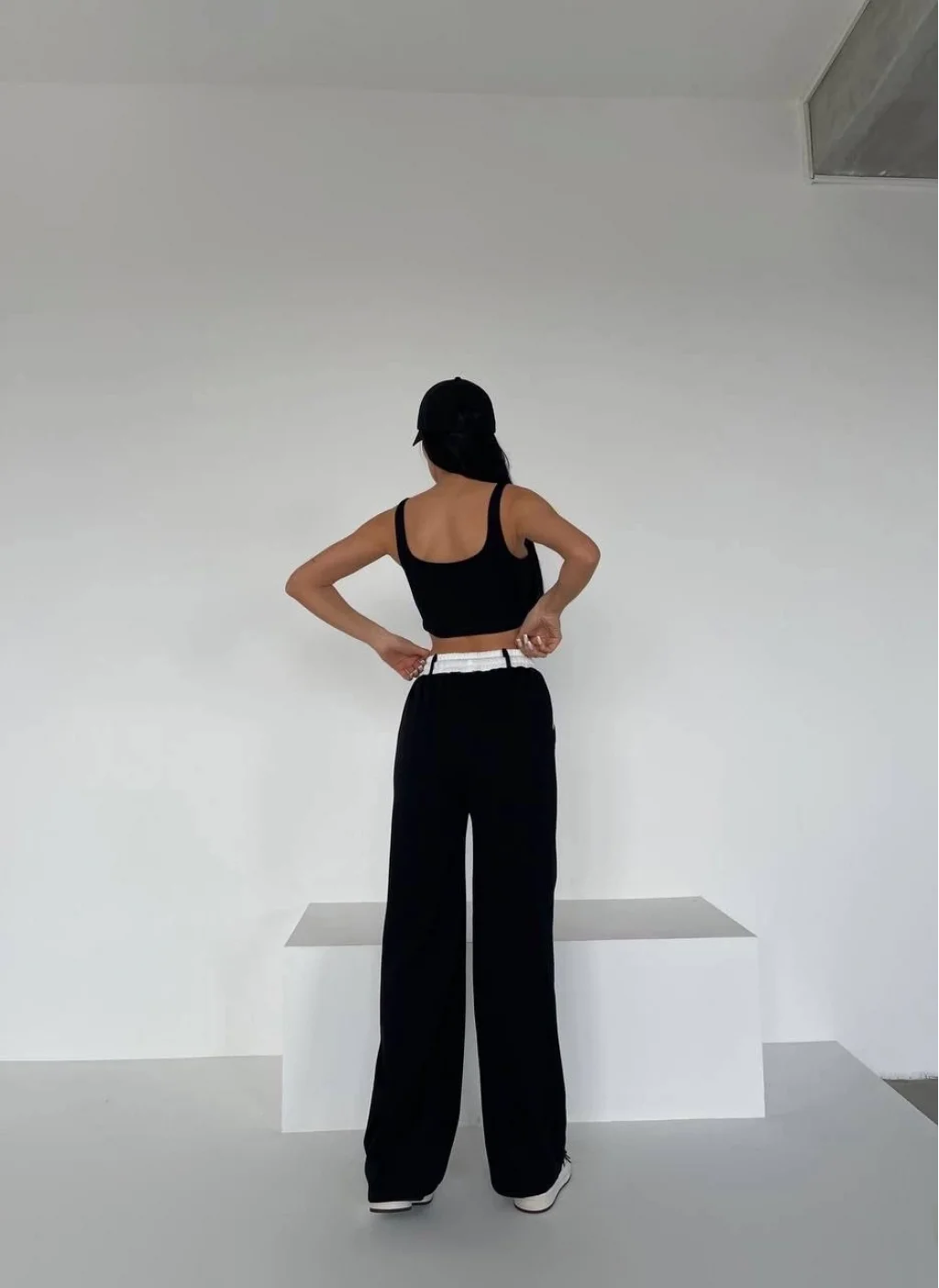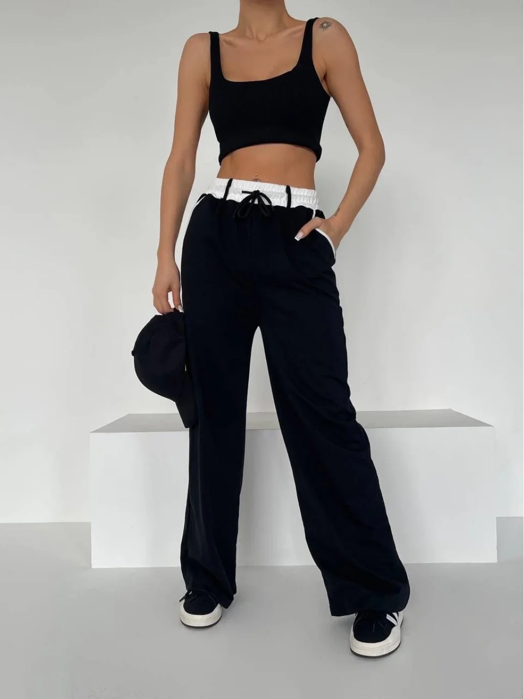 KAZAX Garnili Bol Paça Pantolon, şıklığı ve rahatlığı bir arada sunuyor.