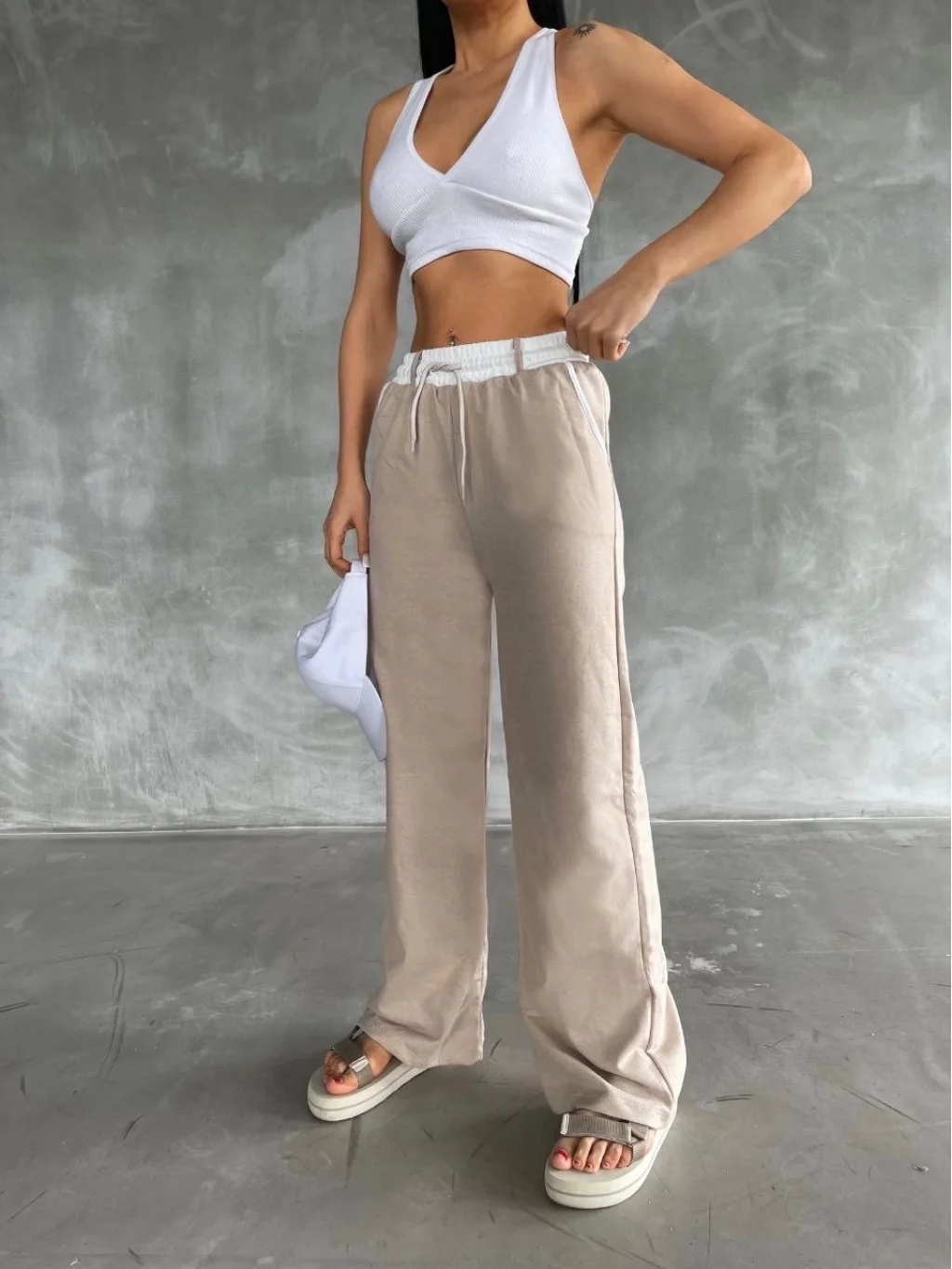 KAZAX Garnili Bol Paça Pantolon, şıklığı ve rahatlığı bir arada sunuyor.