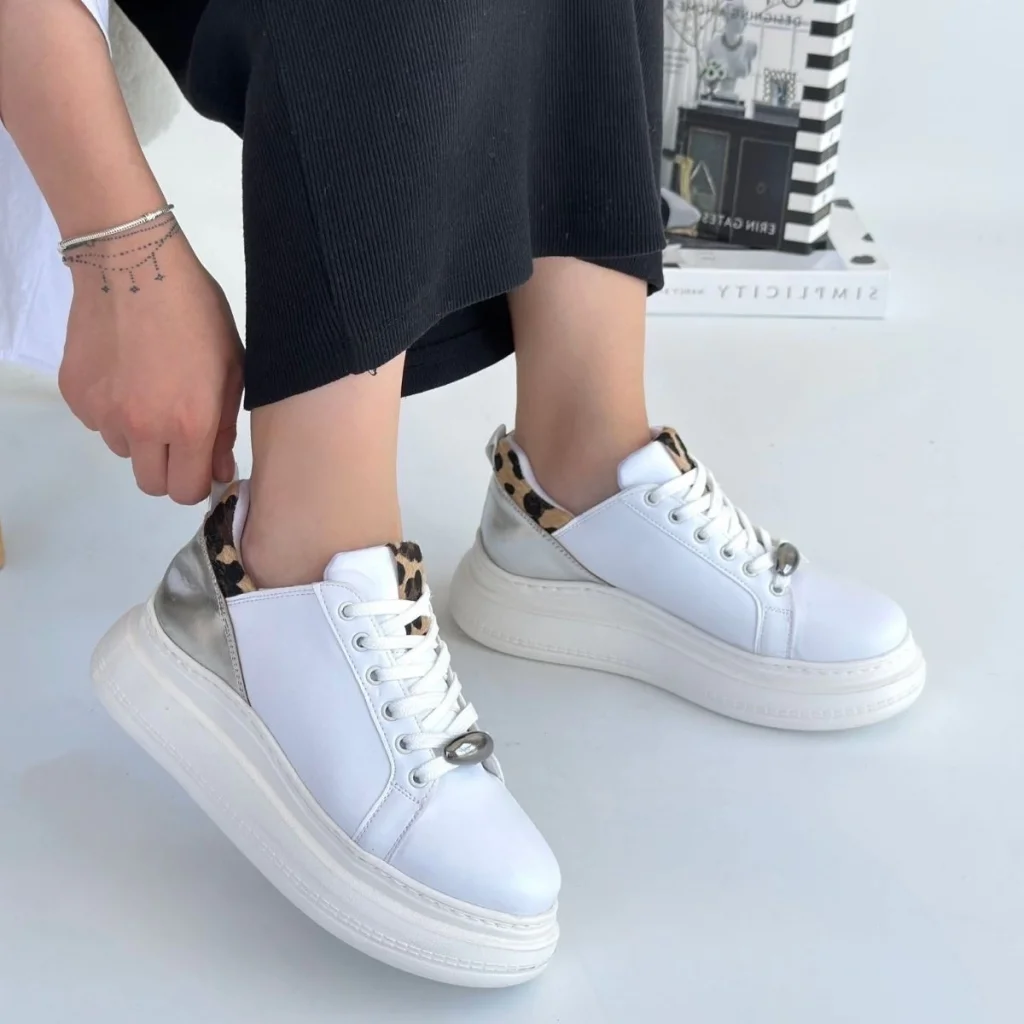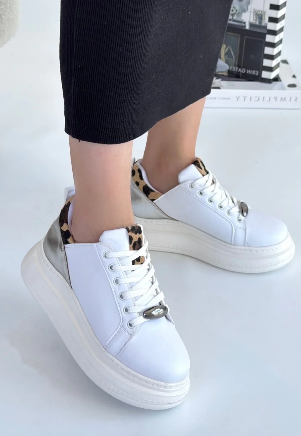 Gasta Beyaz Cilt Gümüş Detaylı Bağcıklı Spor Ayakkabı