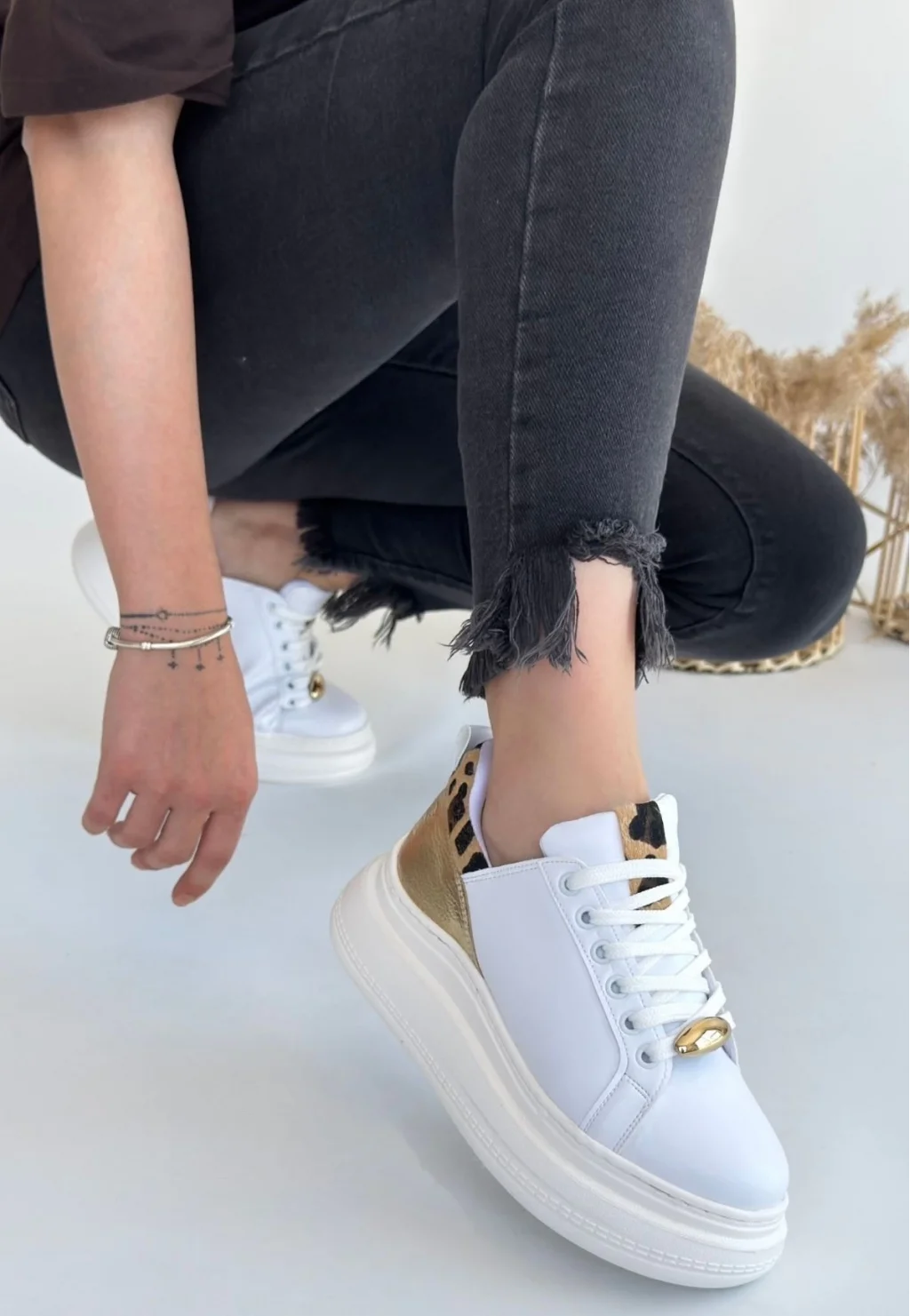 Gasta Beyaz Cilt Sarı Detaylı Bağcıklı Spor Ayakkabı