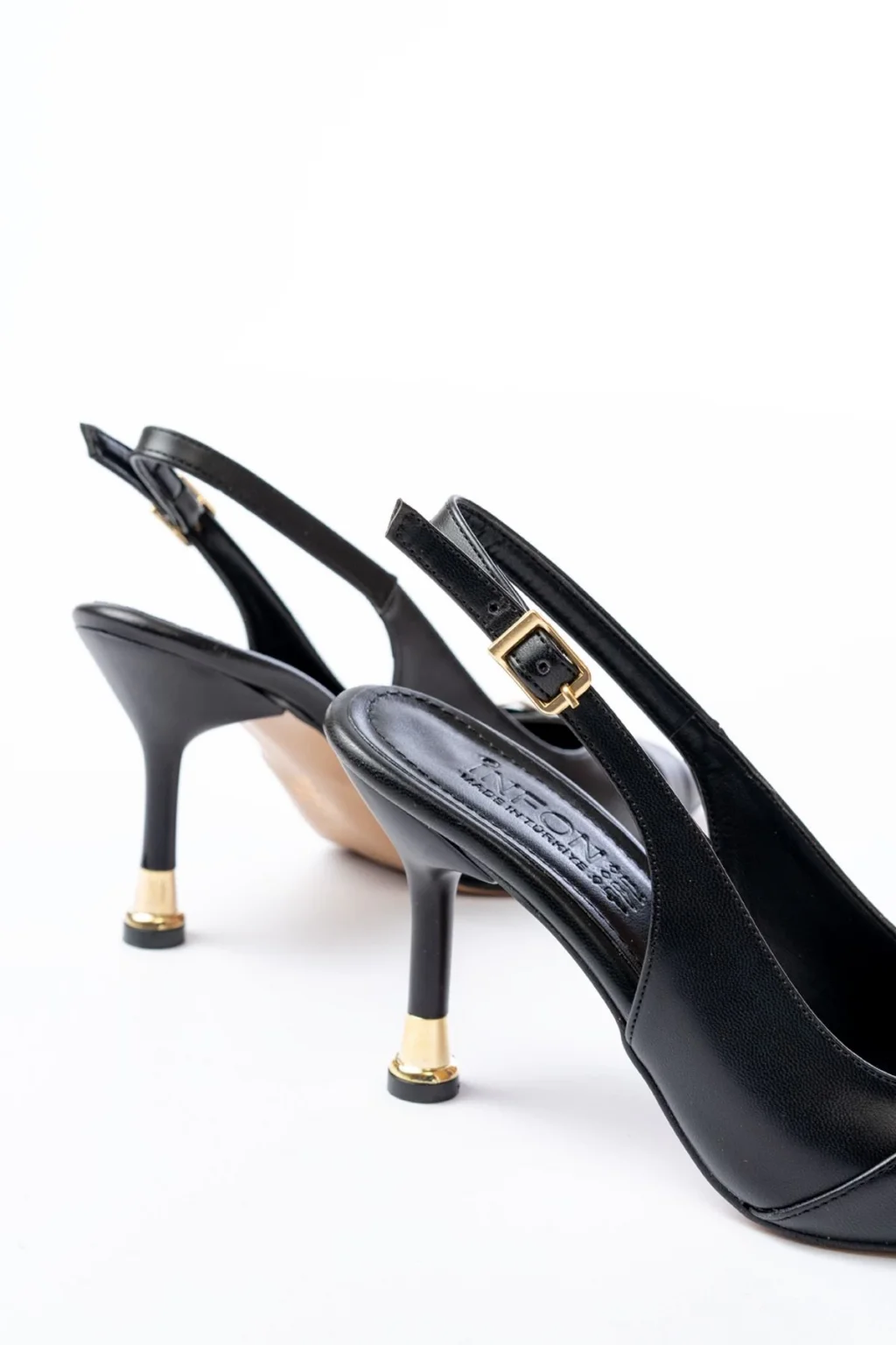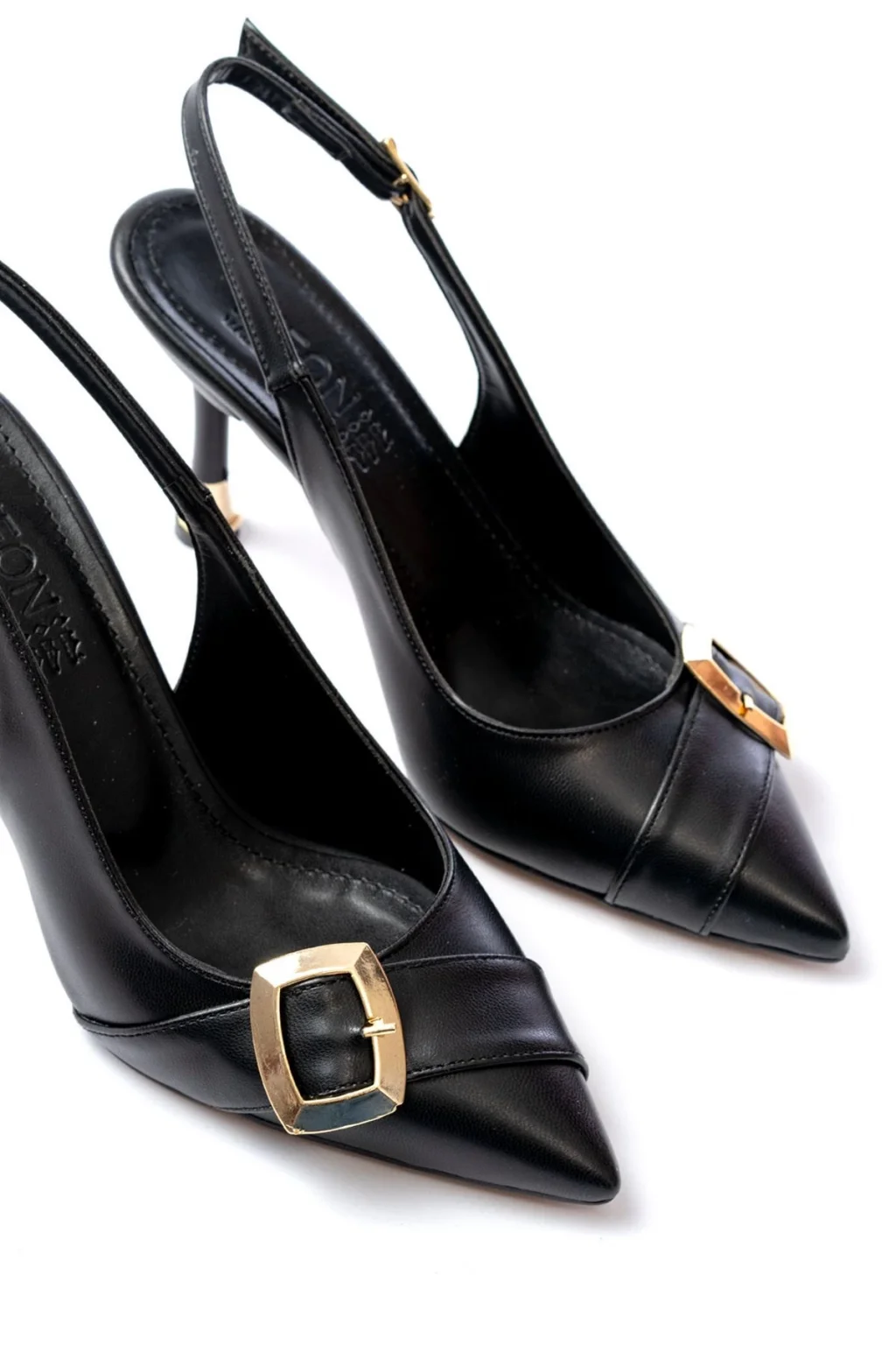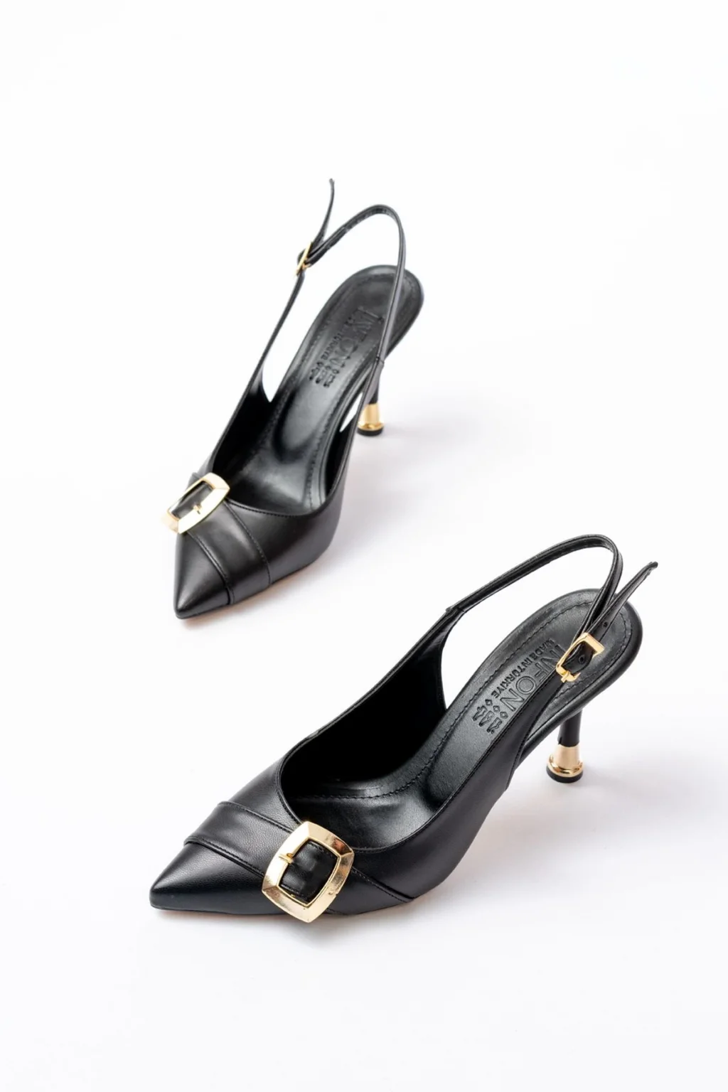 Lanina Siyah Cilt Topuklu Ayakkabı