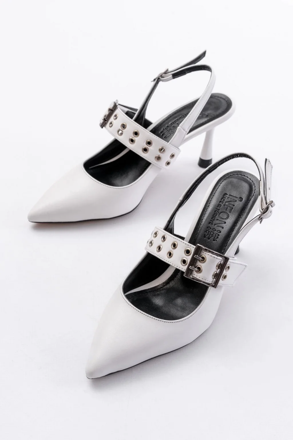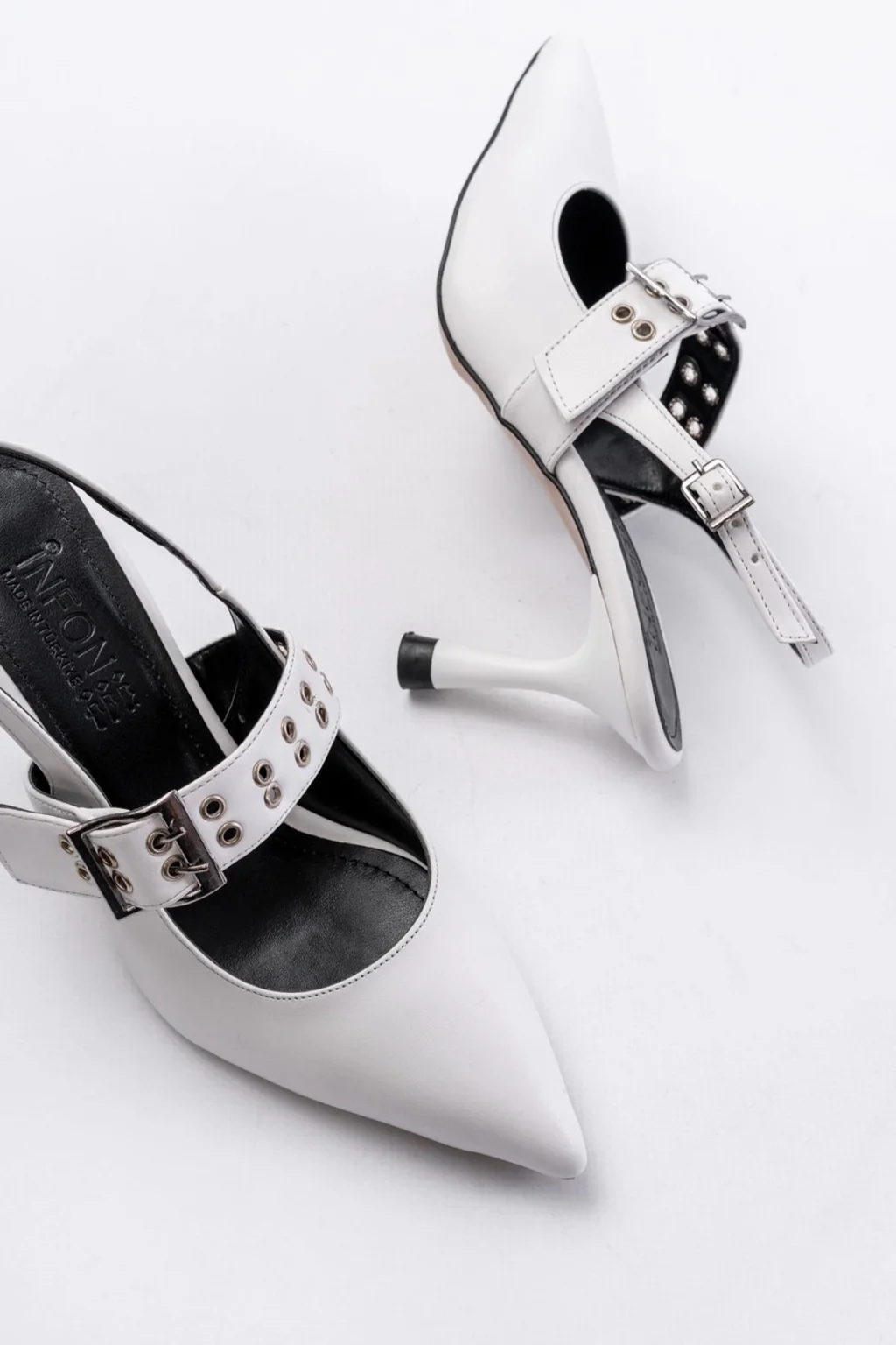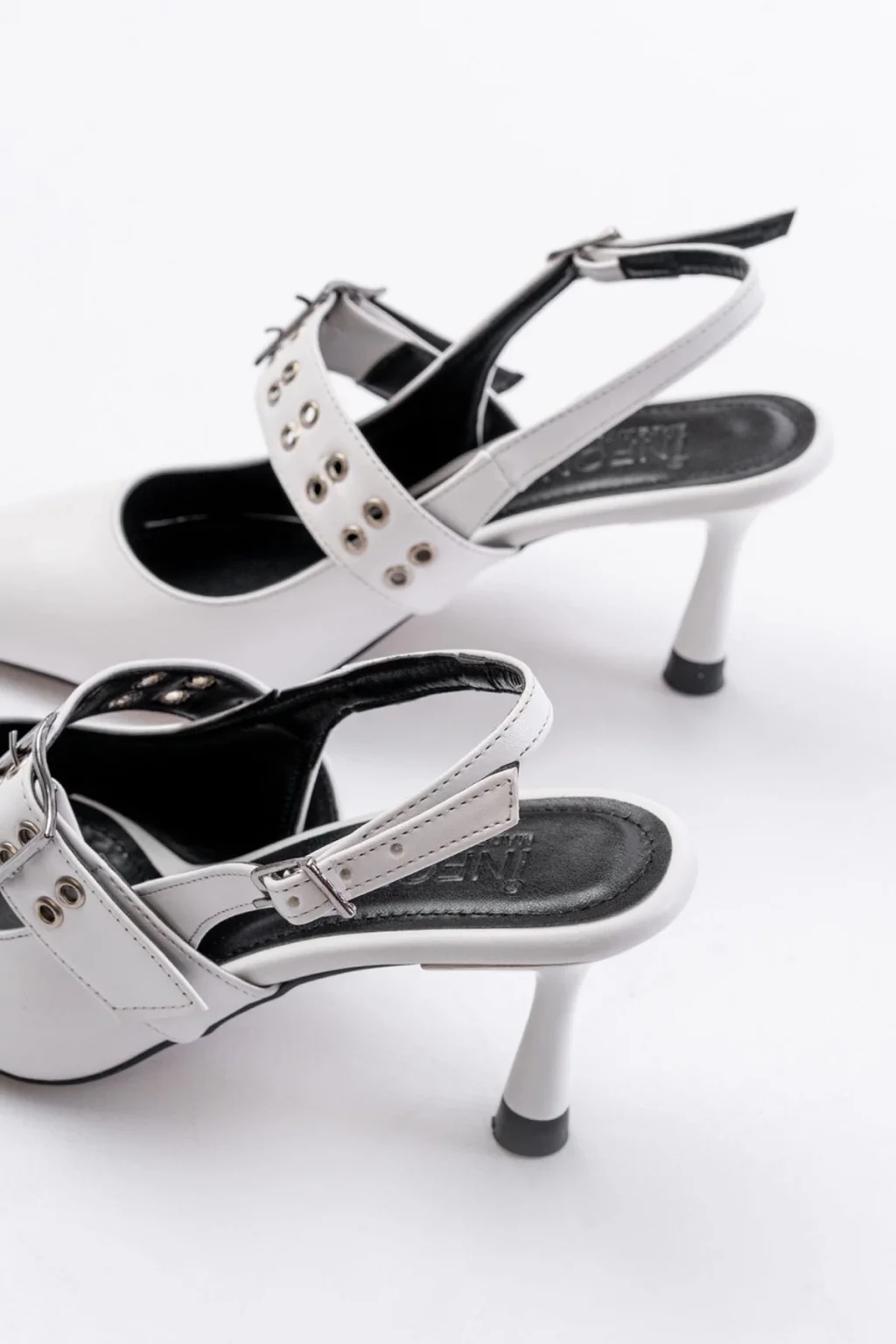 Toran Beyaz Rugan Siyah Süet Detaylı Topuklu Ayakkabı