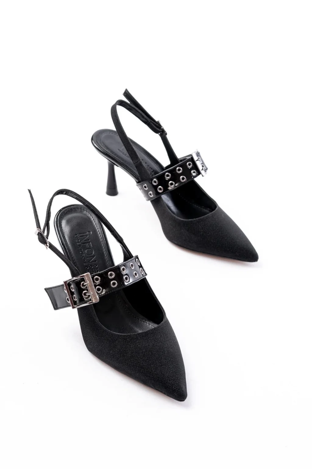 Lanina Siyah Cilt Topuklu Ayakkabı