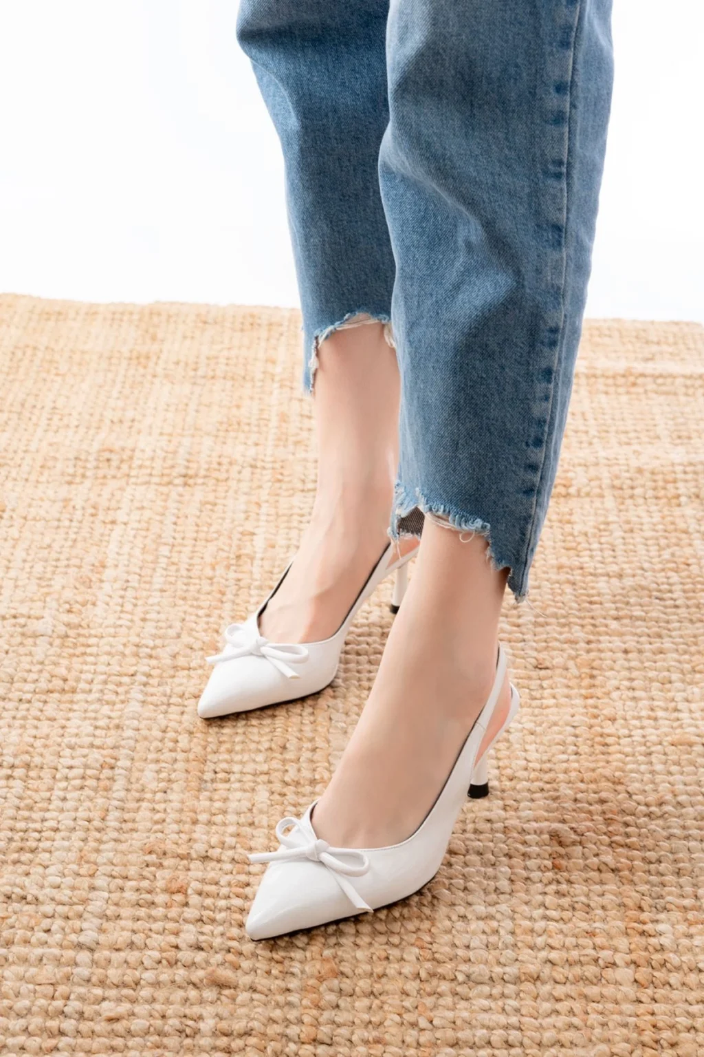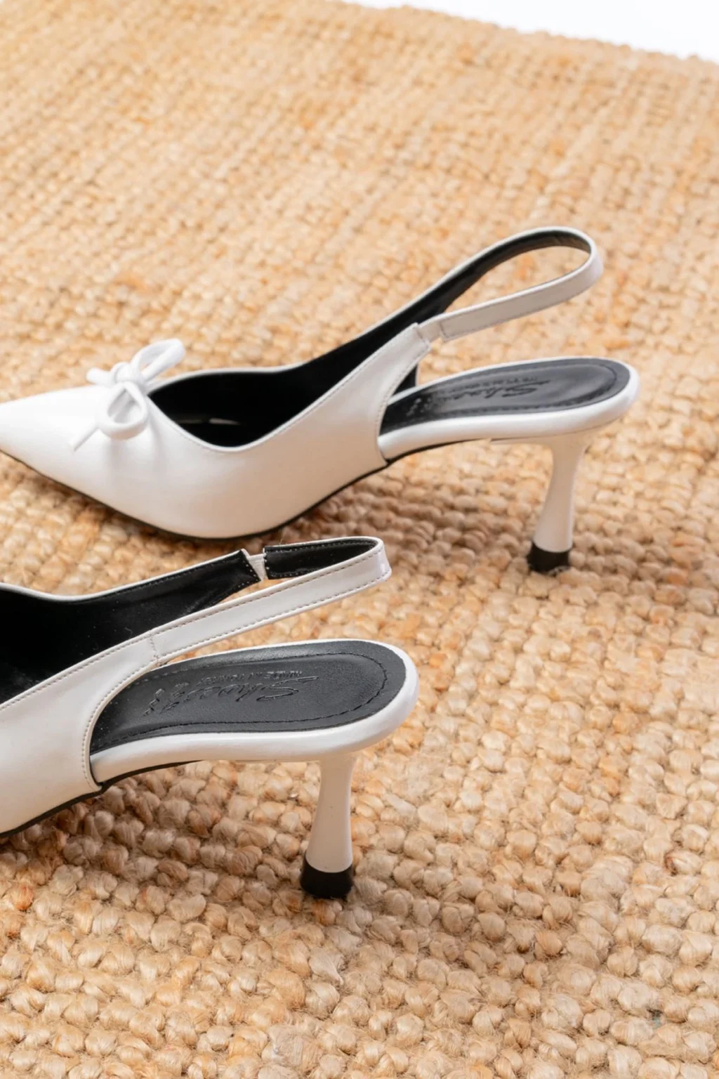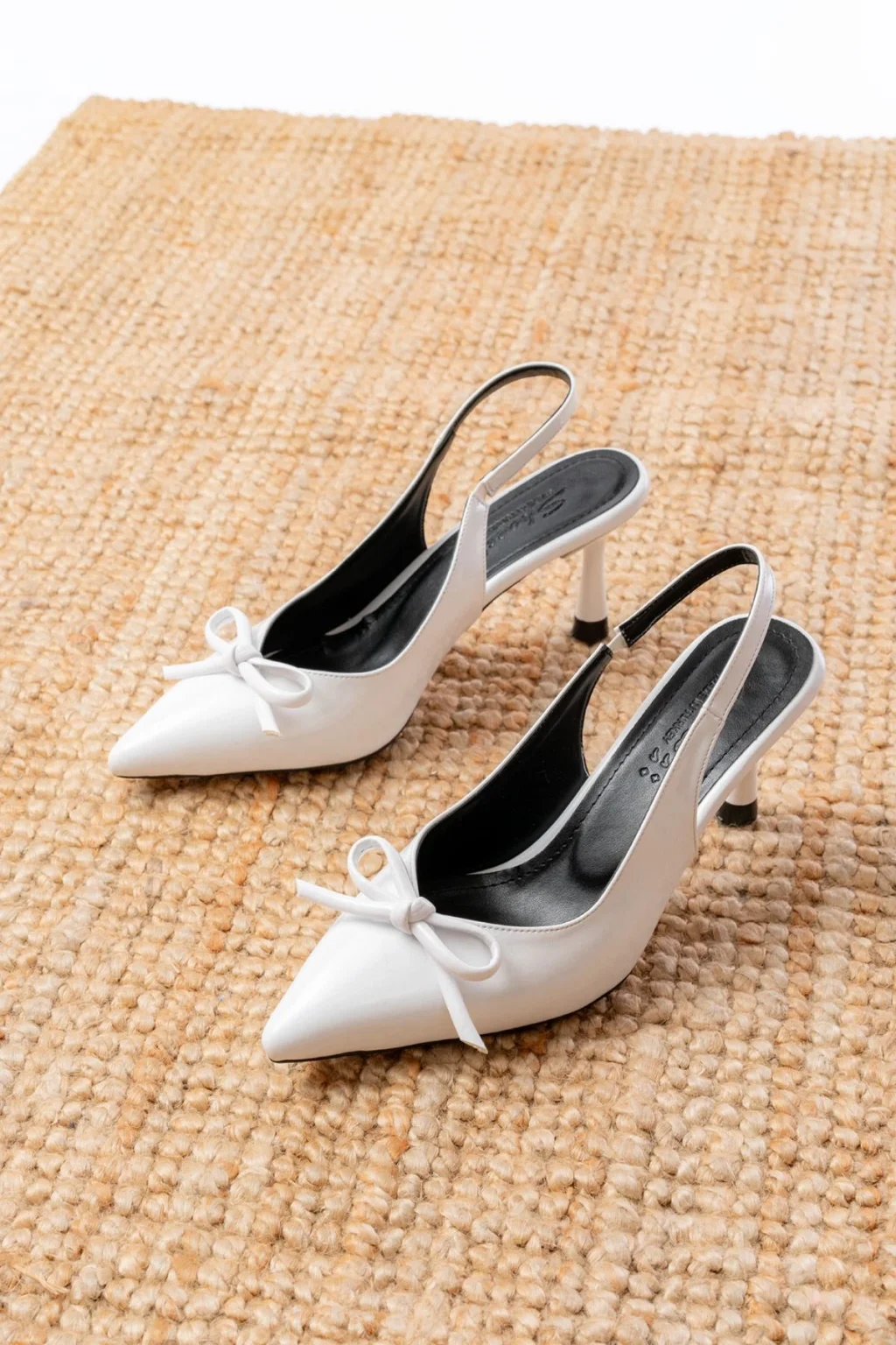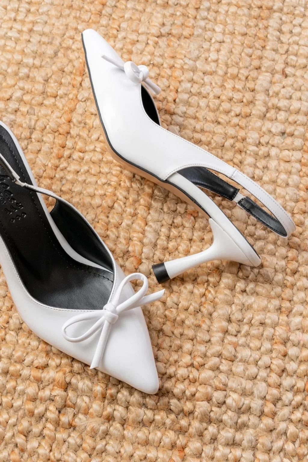 Toran Beyaz Rugan Siyah Süet Detaylı Topuklu Ayakkabı