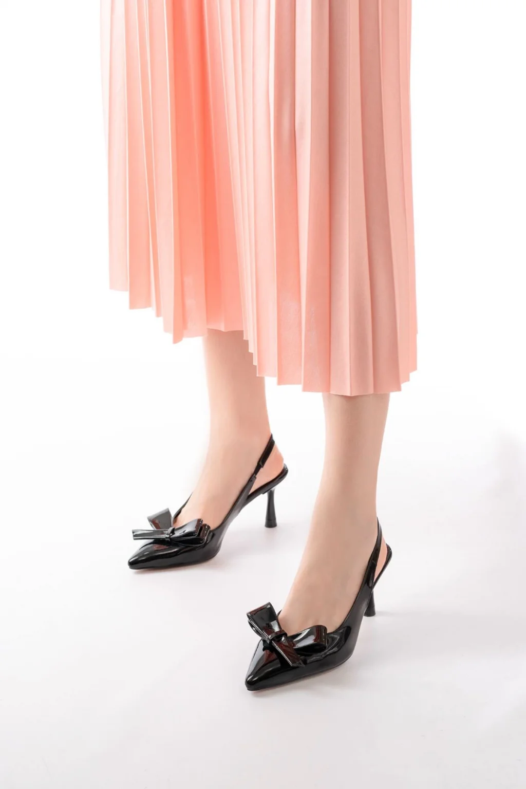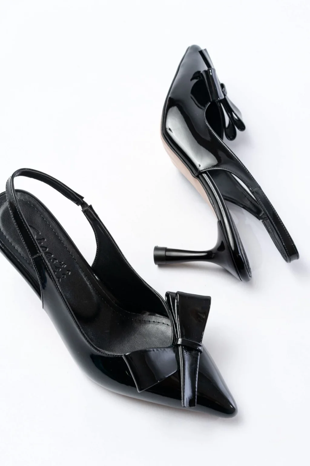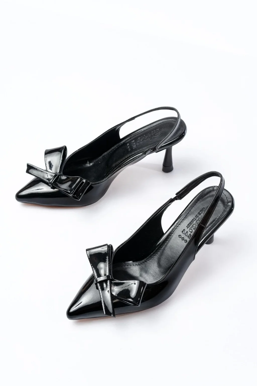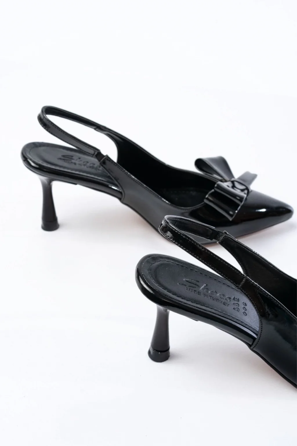 Lanina Siyah Cilt Topuklu Ayakkabı
