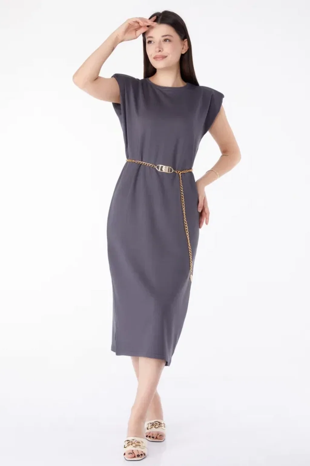 KAZAX marka antrasit jile elbise, şıklık ve rahatlığı bir arada sunuyor.