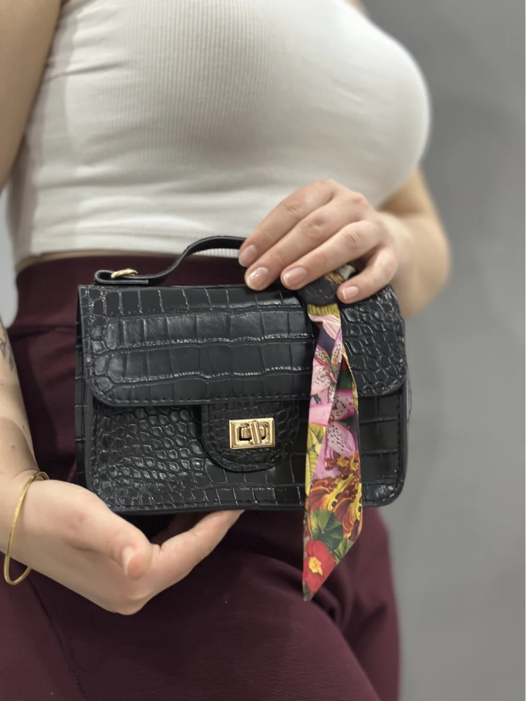 Jisse siyah cilt çanta, şıklık ve kullanışlılığı bir arada sunar. Hem günlük kullanıma uygun hem de özel günlerde tercih edebileceğiniz bir tasarıma sahiptir.