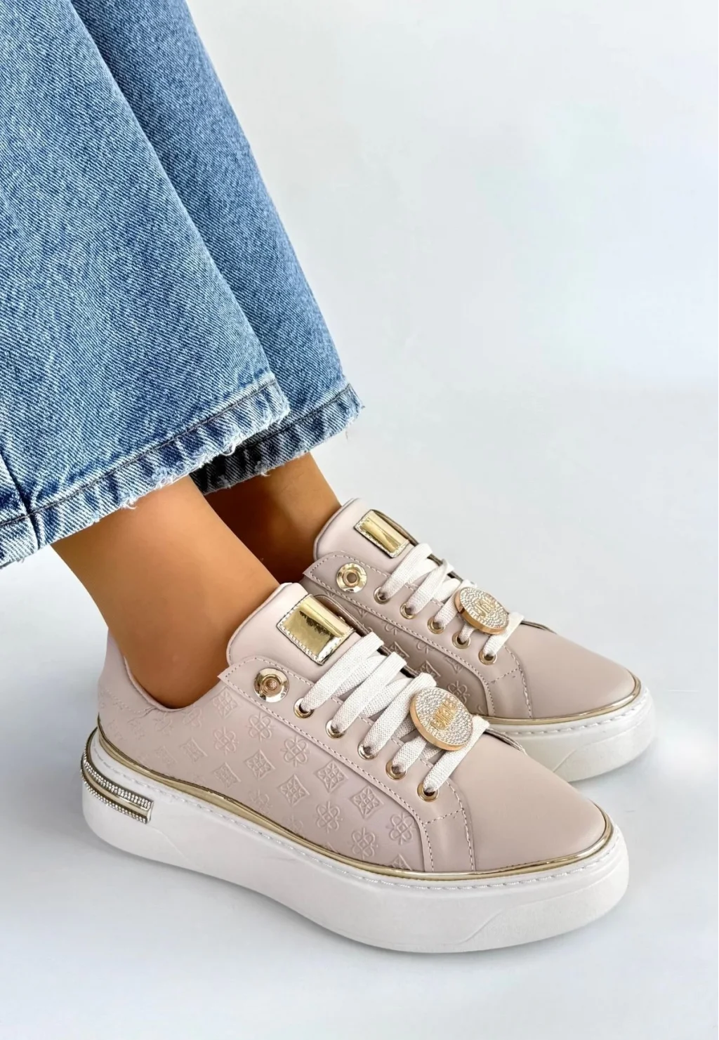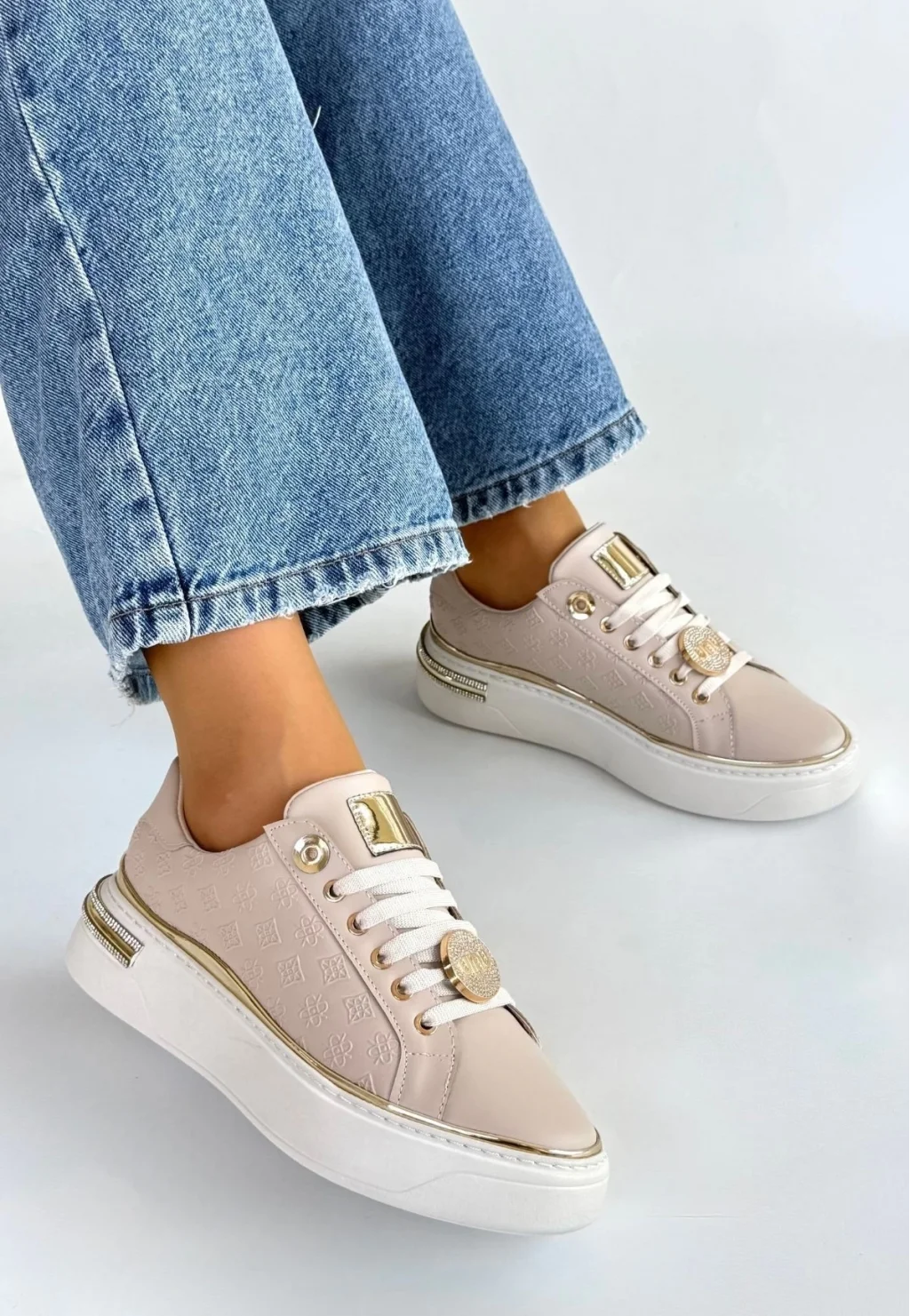 Jlar Bej Cilt Bağcıklı Spor Ayakkabı