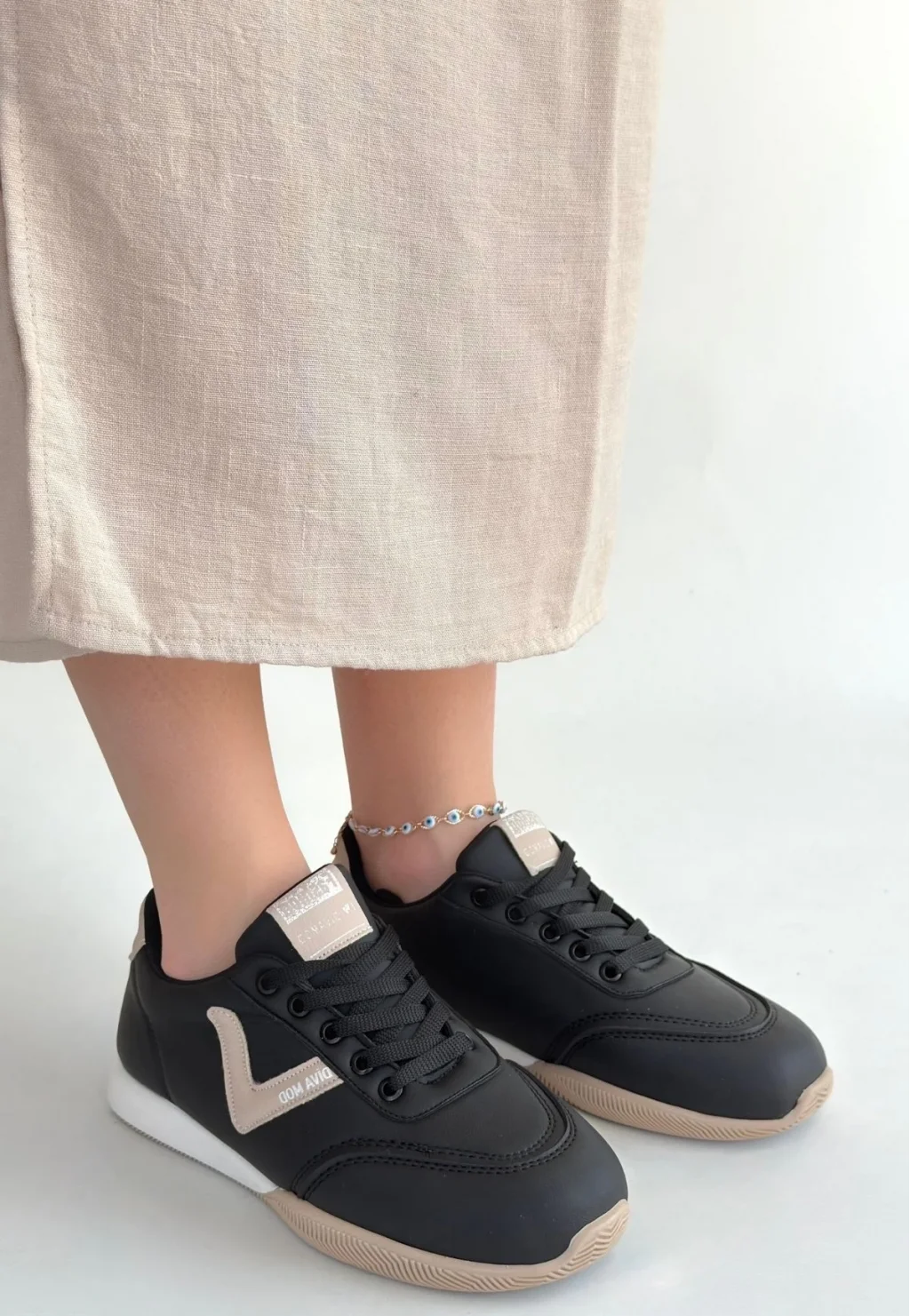 Jowen Siyah Cilt Bej Detaylı Bağcıklı Spor Ayakkabı
