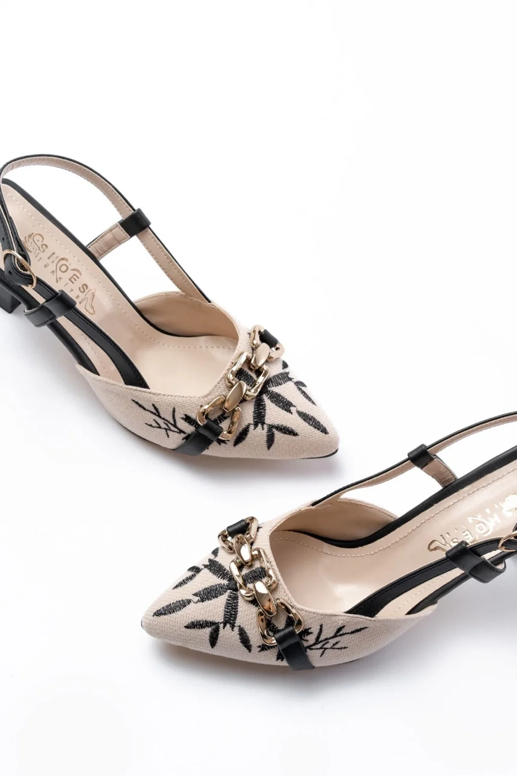 Toran Beyaz Rugan Siyah Süet Detaylı Topuklu Ayakkabı