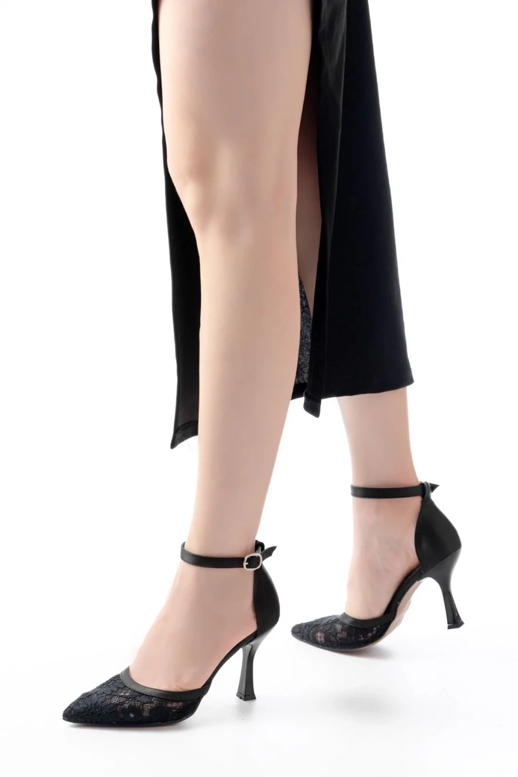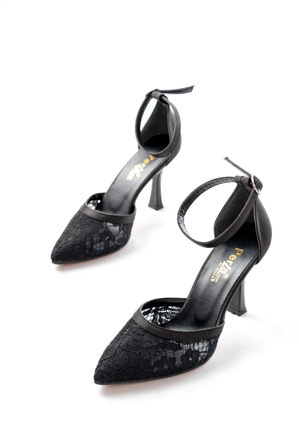 Lanina Siyah Cilt Topuklu Ayakkabı