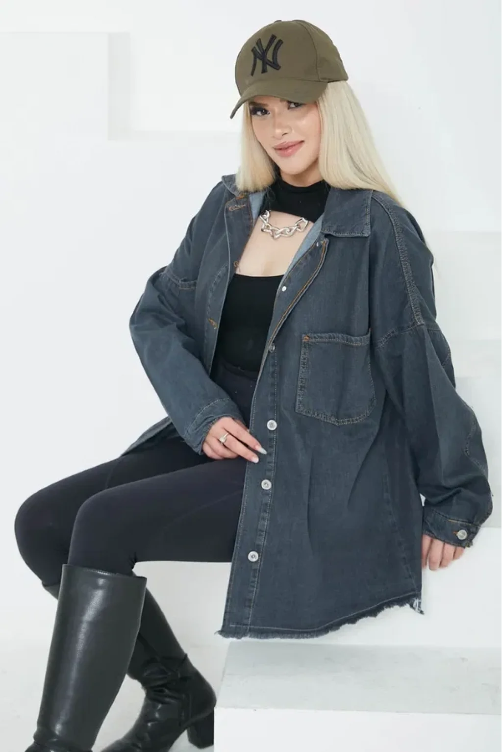 KAZAX Kadın Çift Cepli Püskül Detay Kot Ceket, şıklığına önem veren kadınların favorisi olacak.