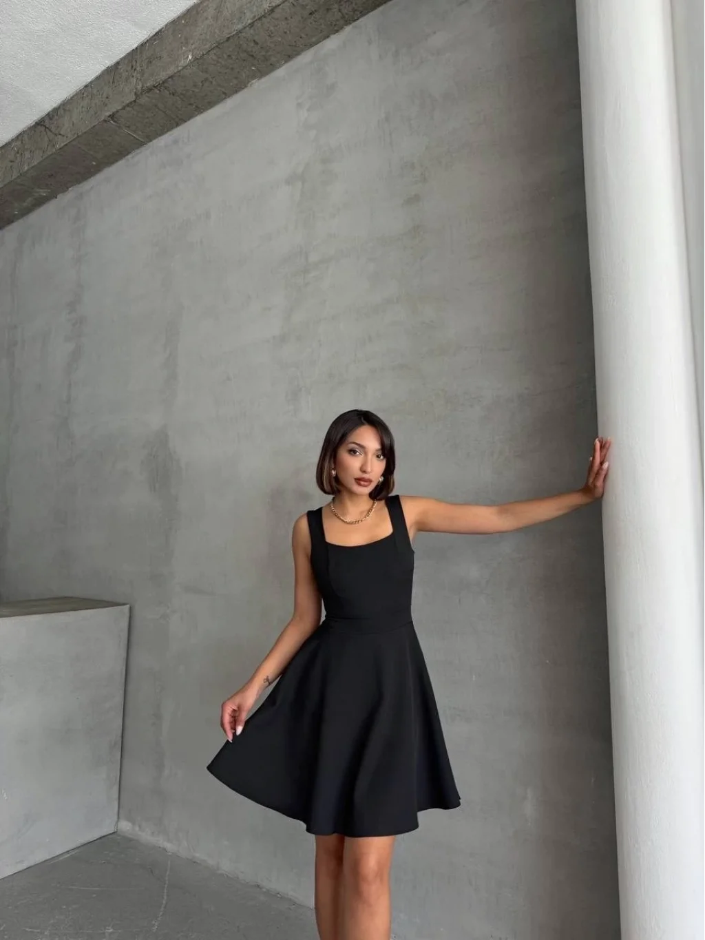 Kadın kare yaka kısa elbise s251188