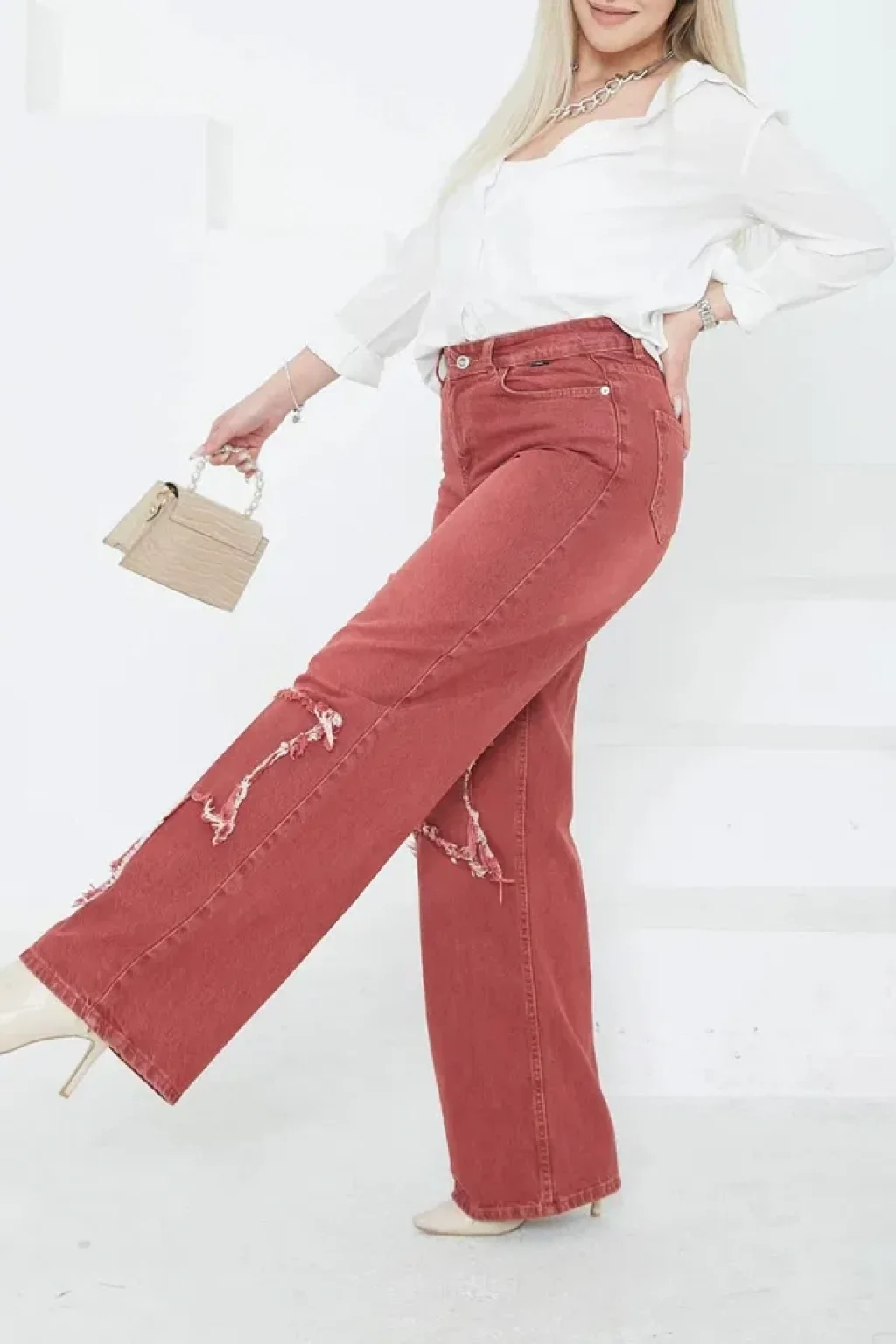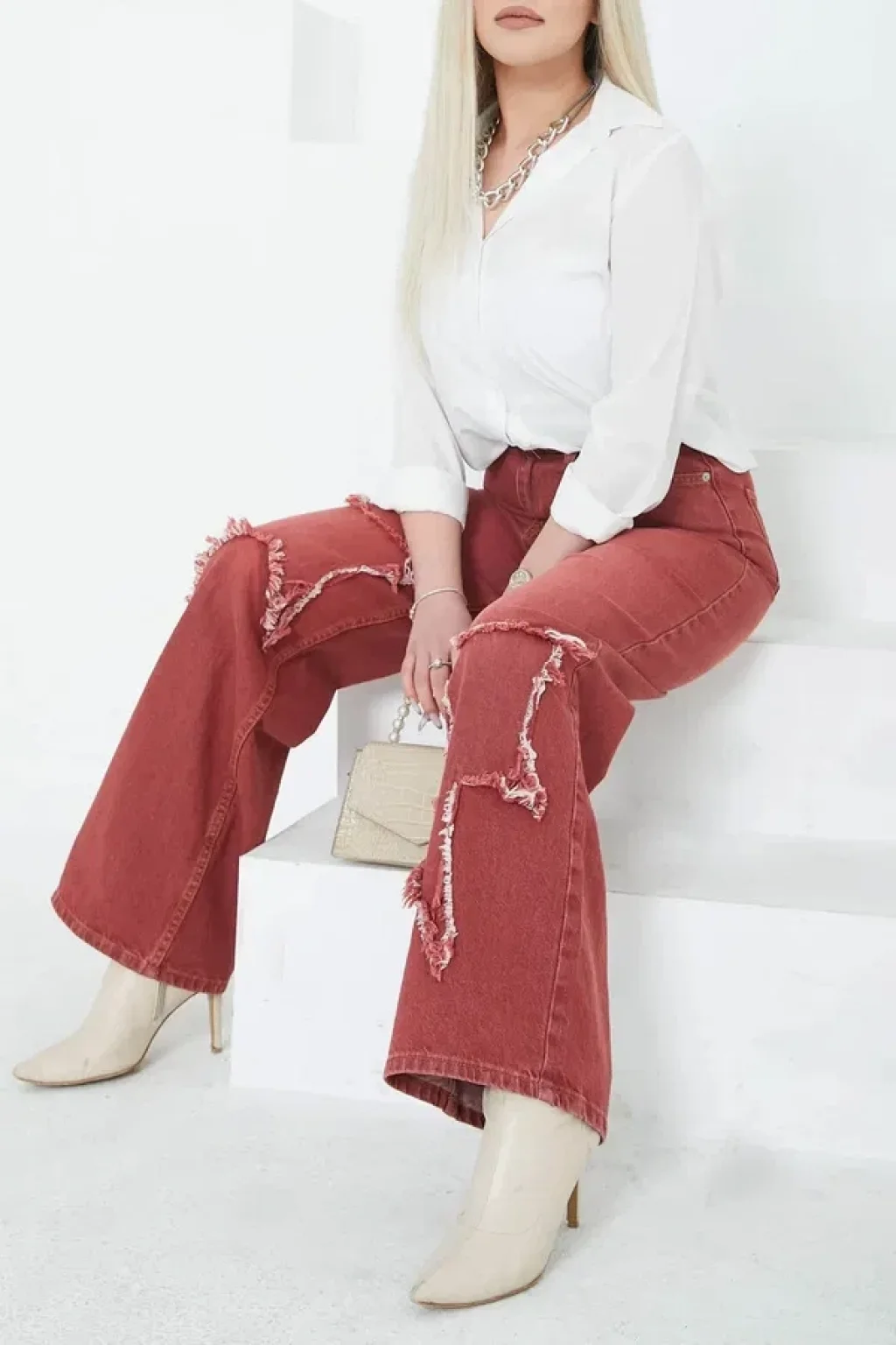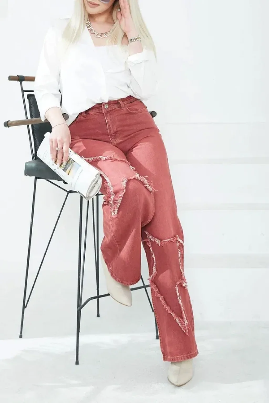 KAZAX markasının yarattığı Yüksel Bel Püskül Detaylı Palazzo Jean Kot Pantolon, şıklık ve rahatlığı bir araya getiriyor.