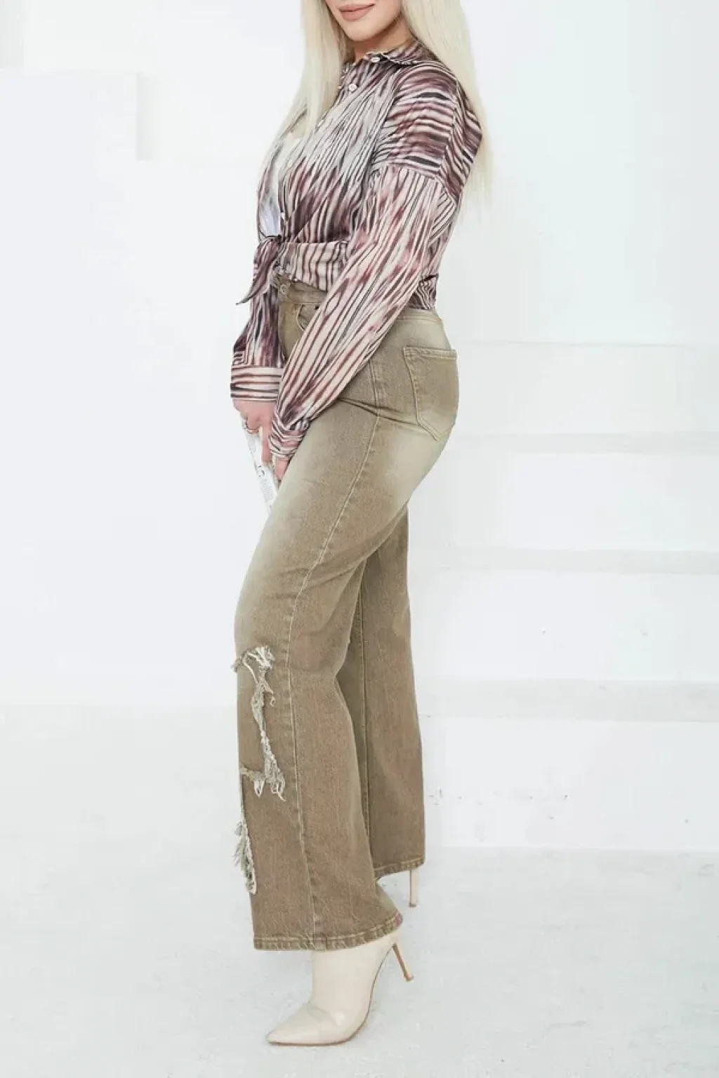 - Geniş paça kesimiyle modern bir tarz sunuyor.