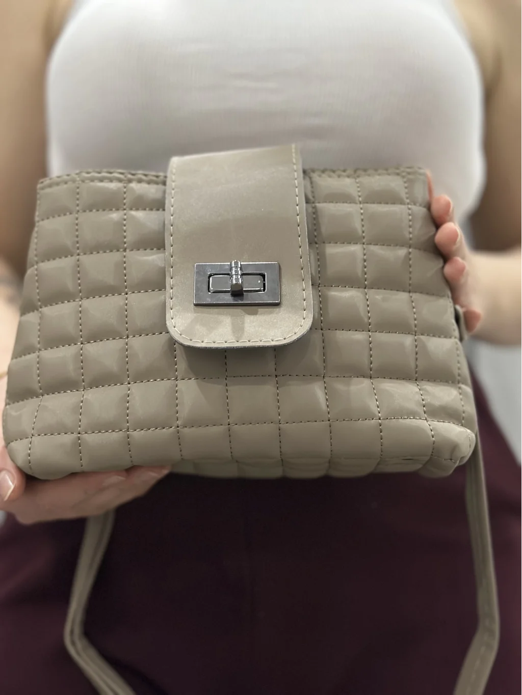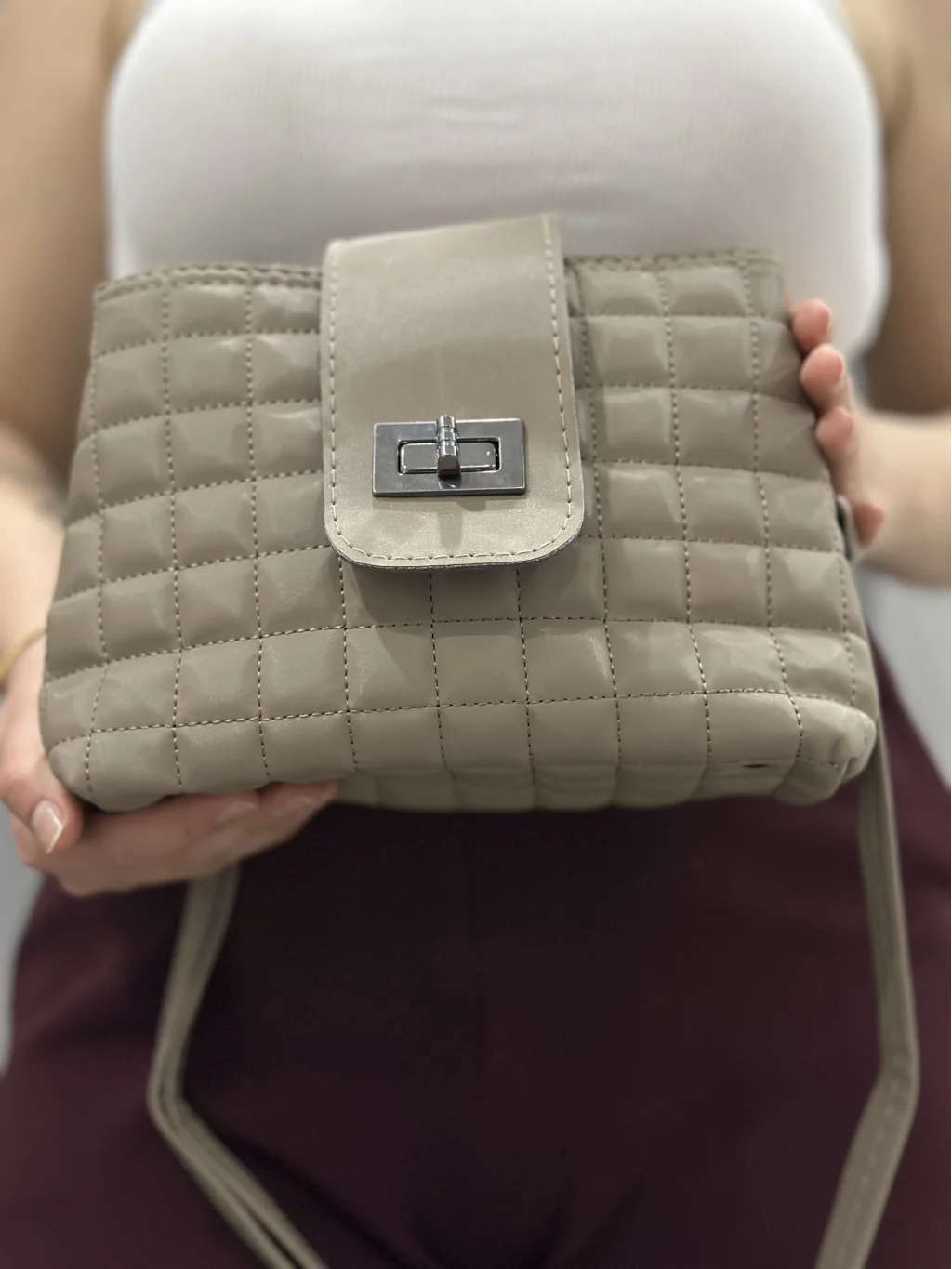 Şıklığı ve zarafeti bir arada sunan Kapaklı Kapitone Vizon Cilt Çanta, her tarza ve her kıyafete kolayca uyum sağlar. Üstün kaliteli malzemelerden üretilmiş olan çanta, hem günlük kullanıma hem de özel davetlere uygun bir şıklık sunar.