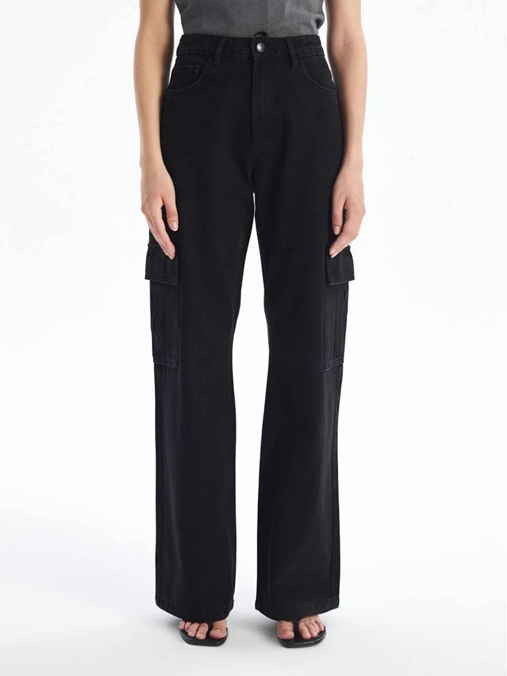 Kargo cep detaylarıyla şıklığı bir araya getiren Siyah Kadın Jeans Pantolon, tarzınızı yansıtacak vazgeçilmez bir parça olmaya aday!