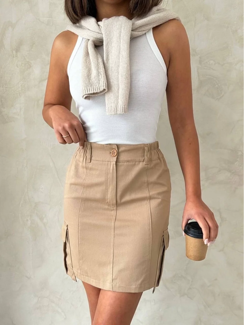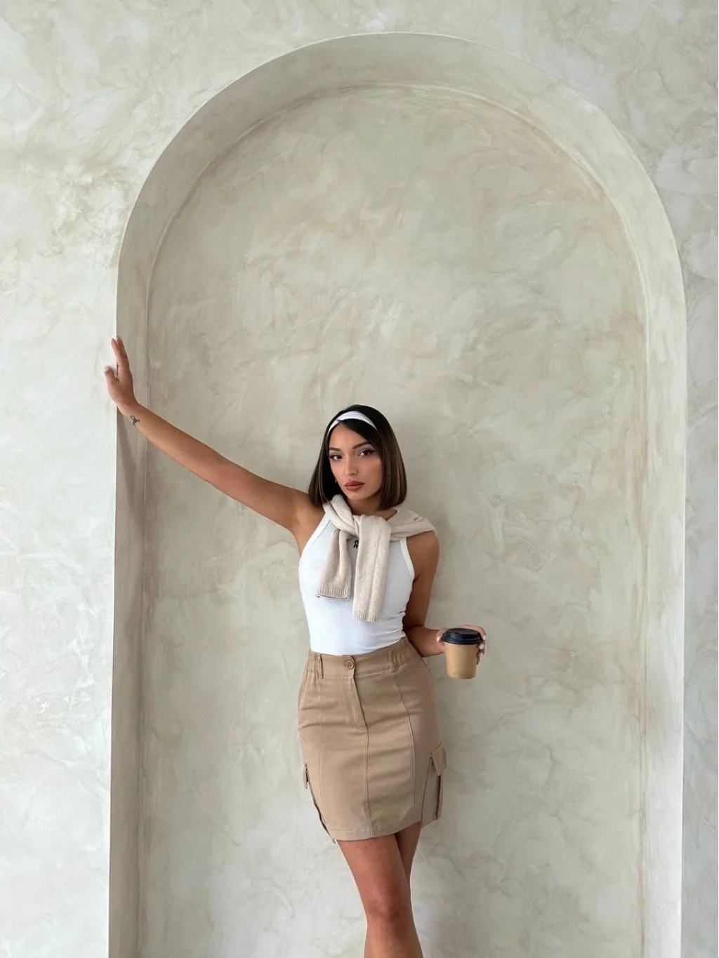 Bu sezonun trendleri arasında yer alan KAZAX marka Kargo Cep Mini Etek, şıklığı ve konforu bir arada sunuyor. İster günlük kullanımda ister şık bir davette tercih edebileceğiniz bu etek, tarzınıza modern ve cool bir dokunuş katacak. İşlevsel kargo cepleri sayesinde hem şık görünecek hem de ihtiyacınız olan eşyaları kolayca taşıyabileceksiniz.