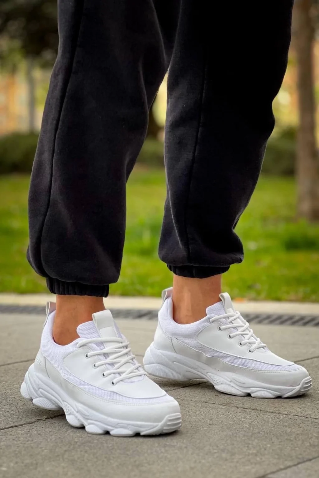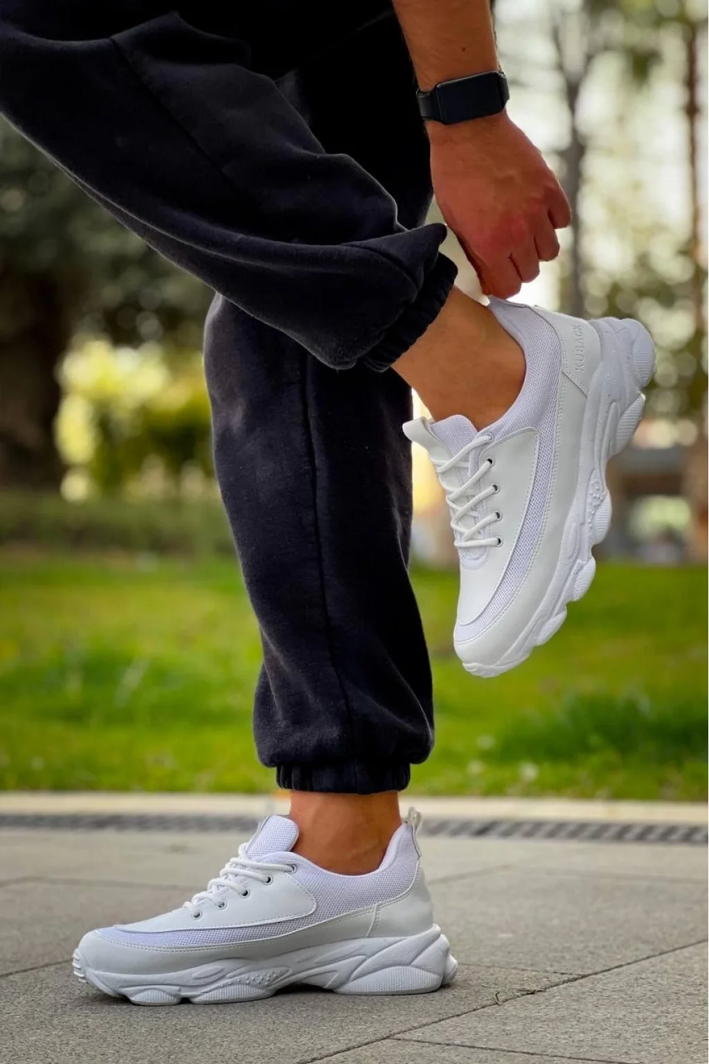 KB-707 Kuback Beyaz Cilt Yüksek Taban Bağcıklı Günlük Erkek Ayakkabı