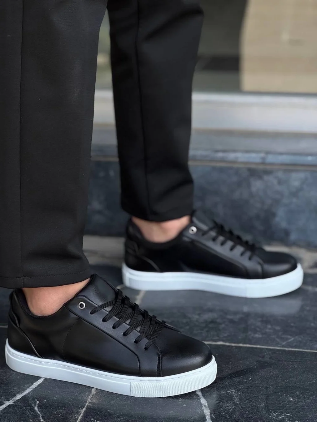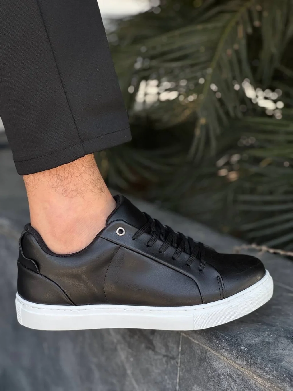KB-BX1 Kuback Siyah Cilt Yüksek Beyaz Taban Günlük Erkek Ayakkabı