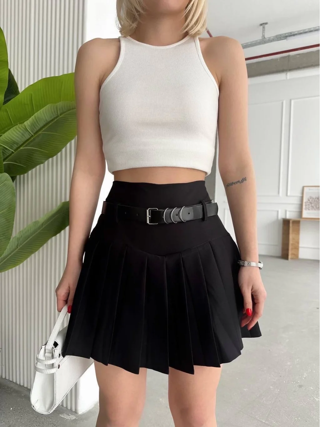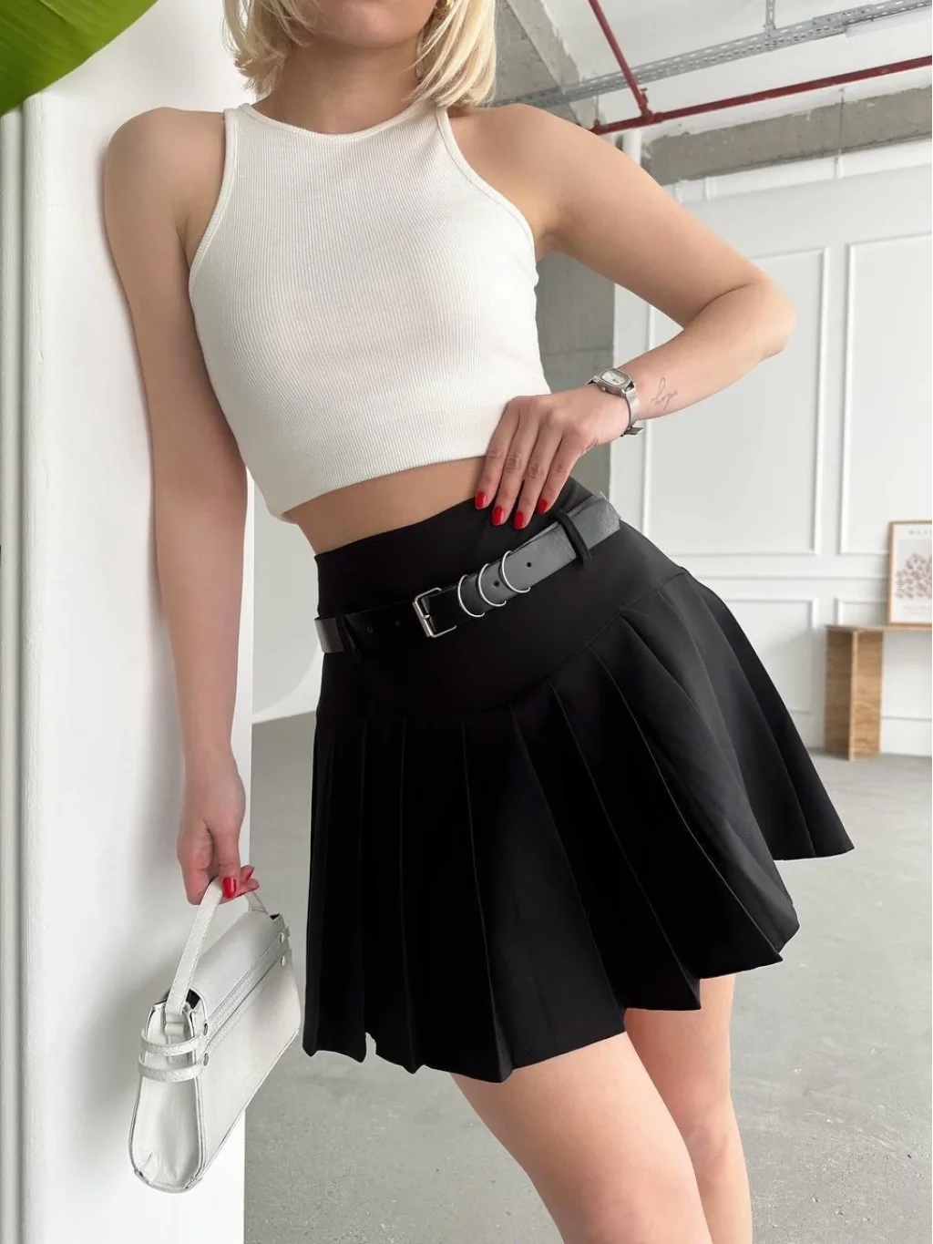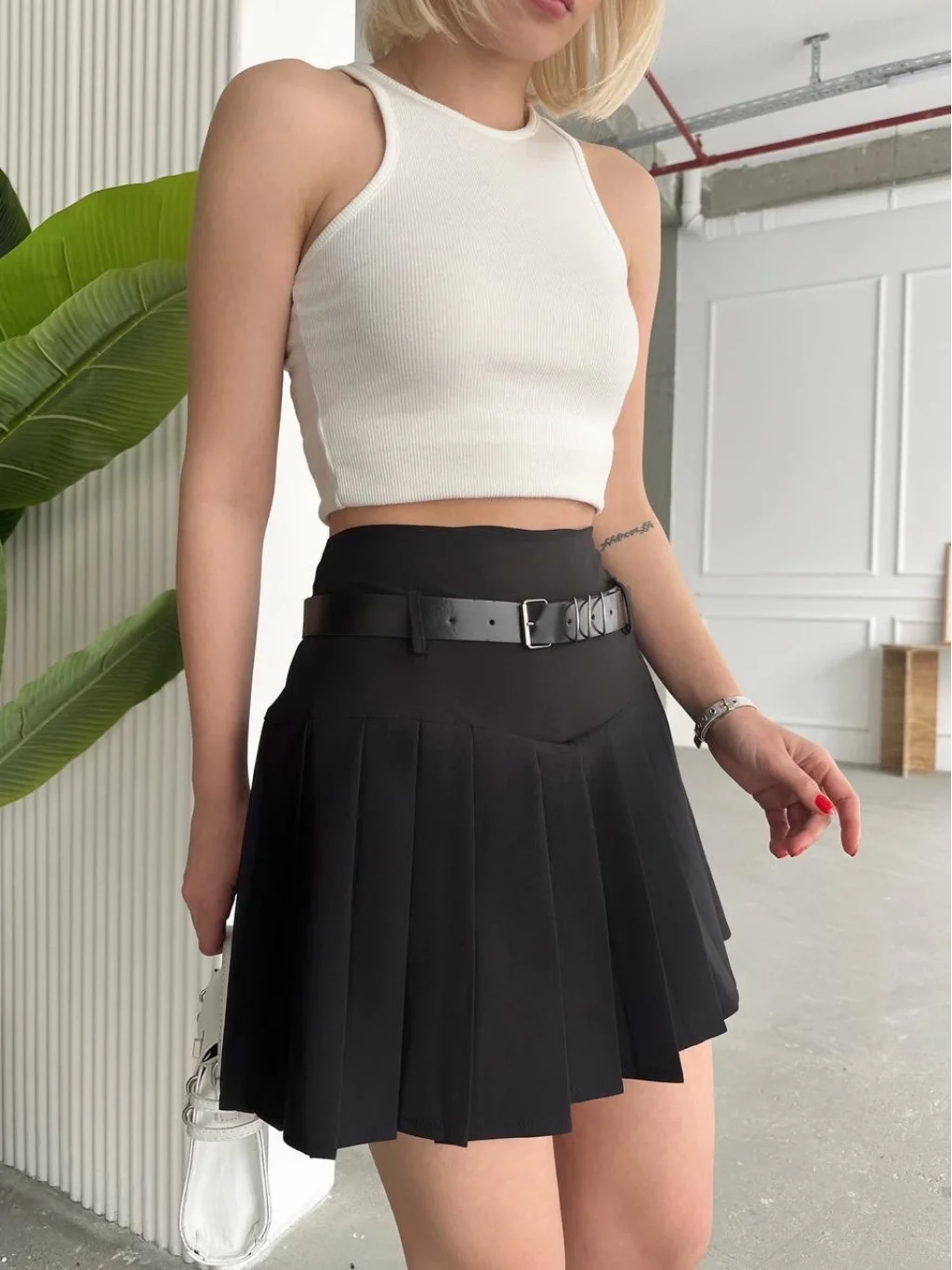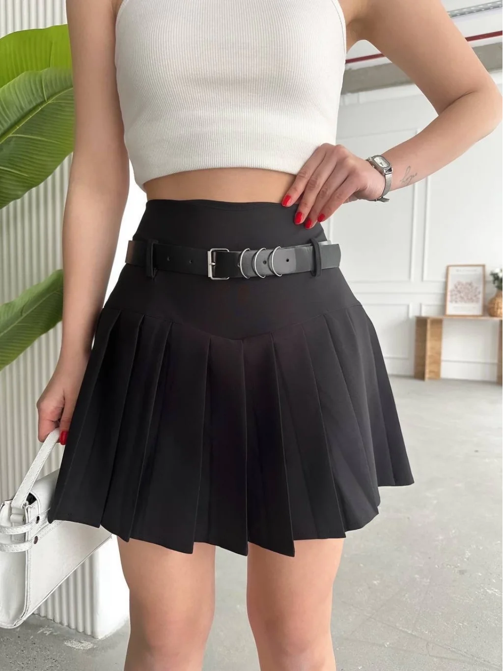 KAZAX'in kemer detaylı pikseli şort eteği, yaz aylarının vazgeçilmezi olmaya aday!