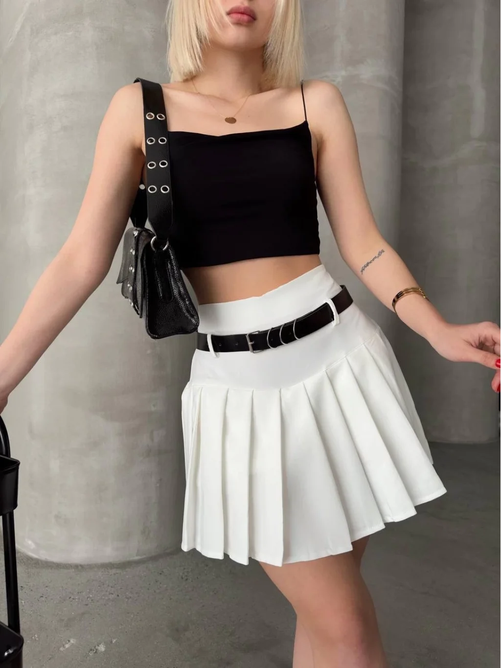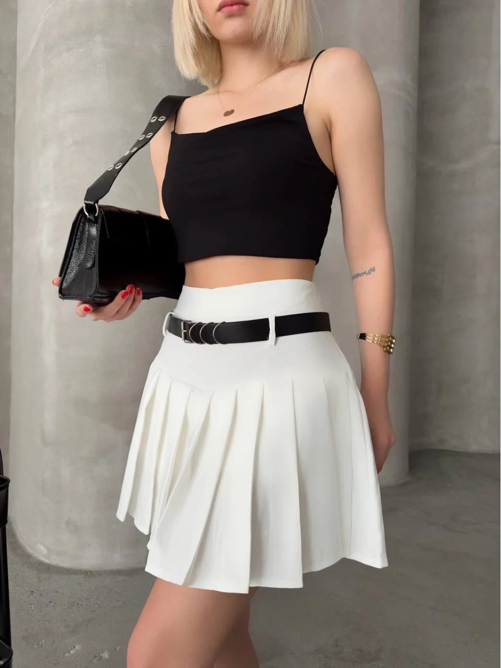 Kemerli pikseli şort etek