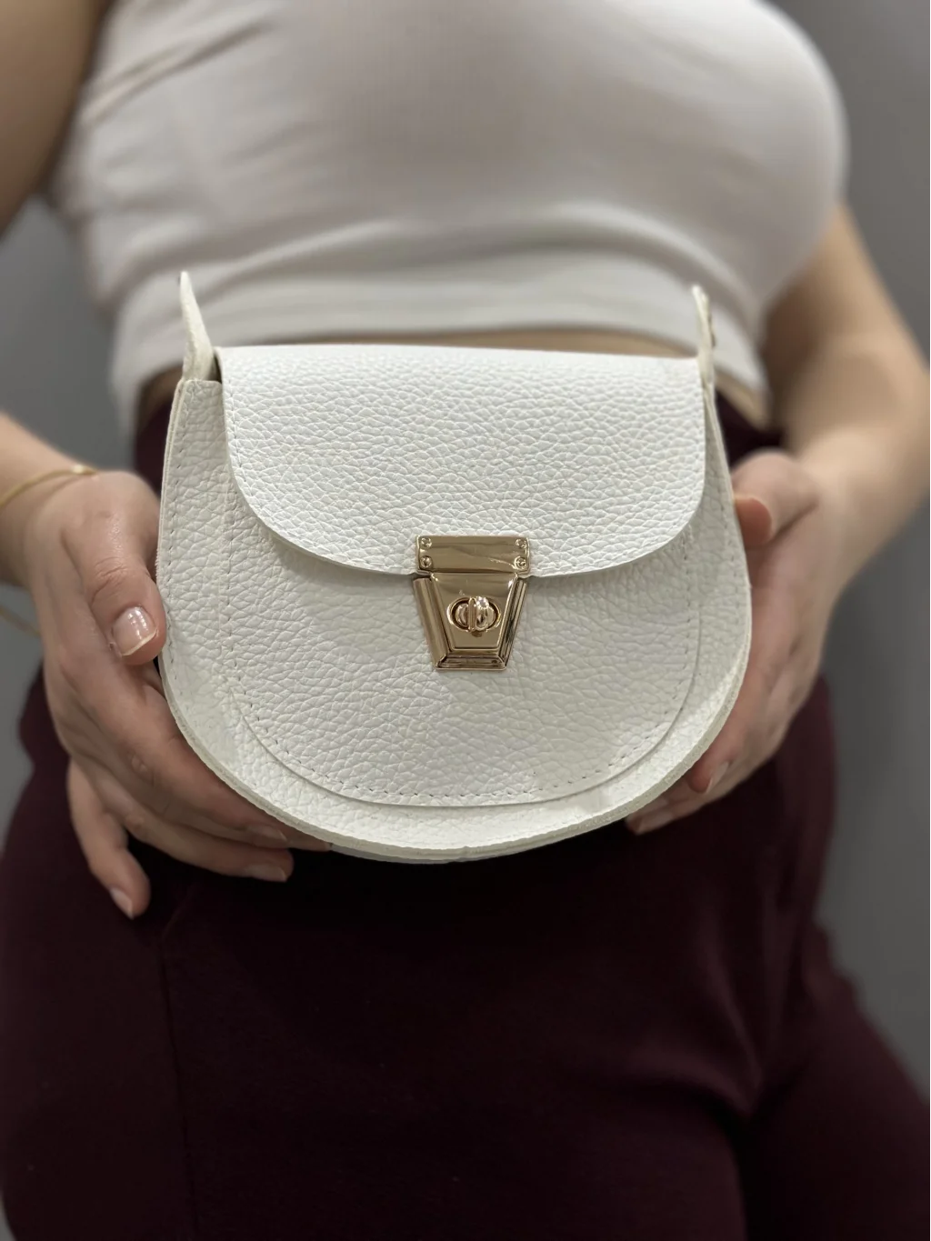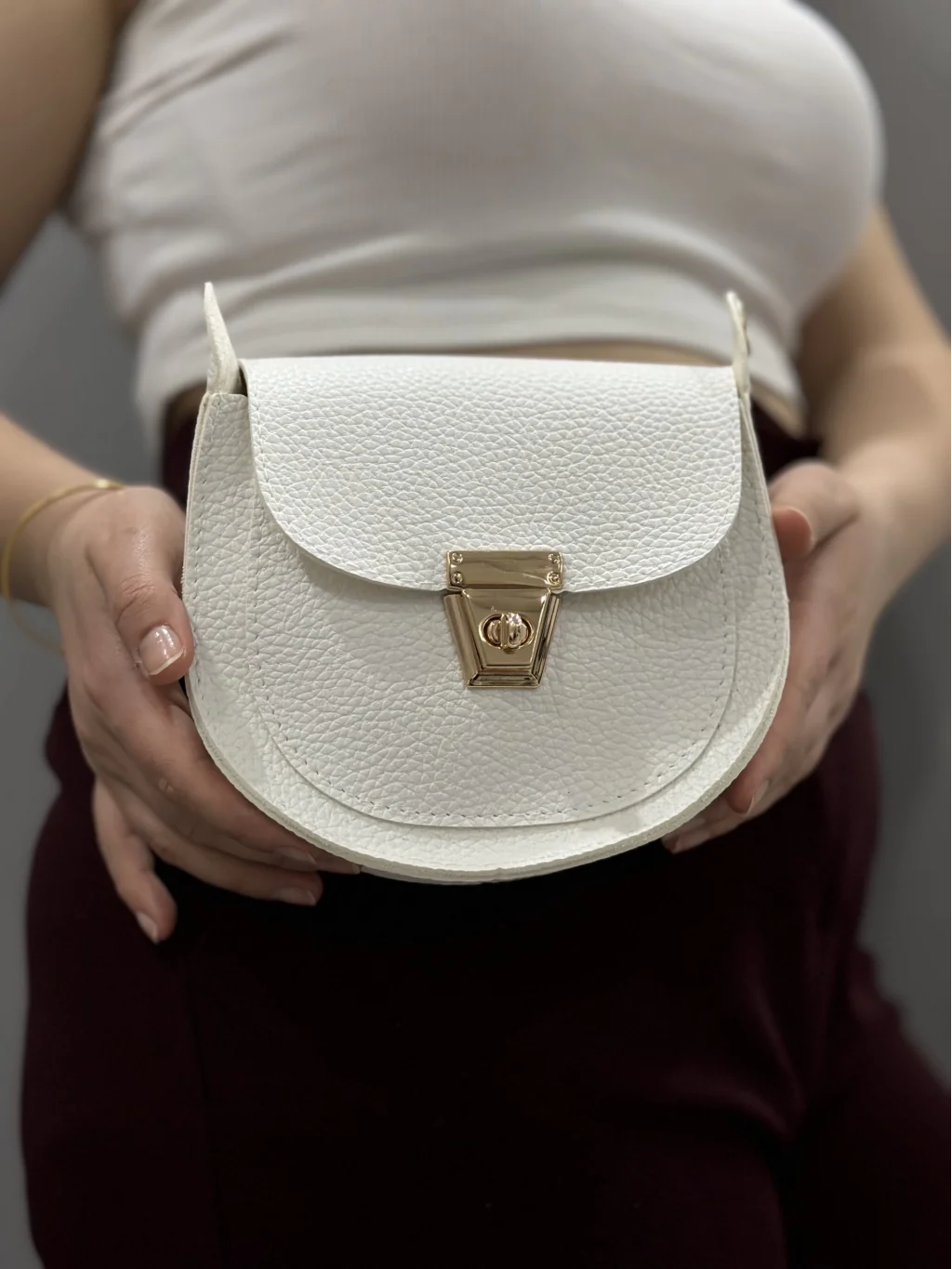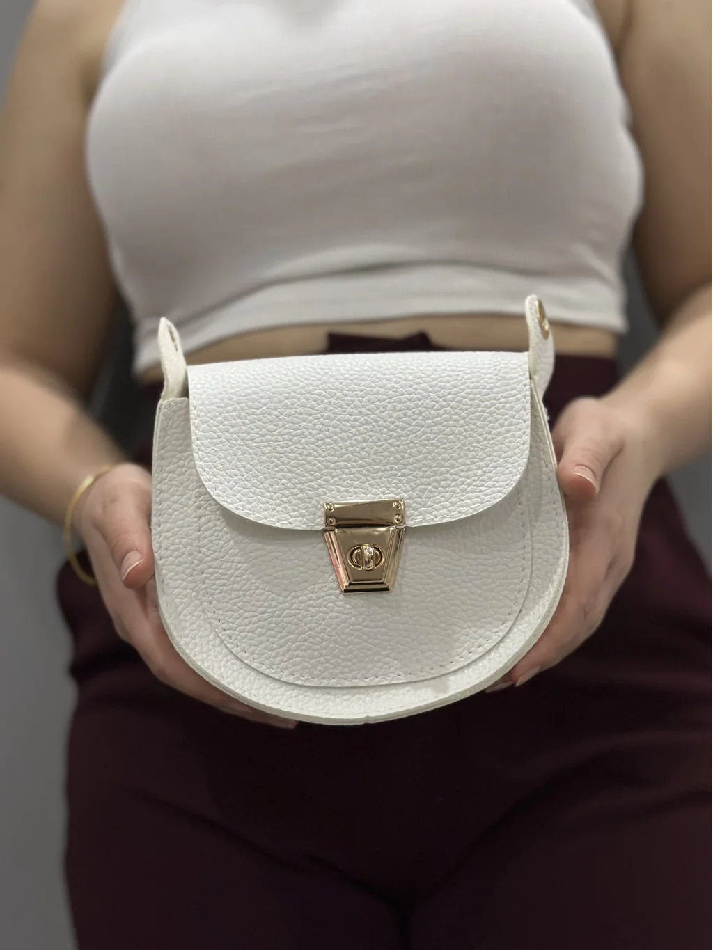 Bu beyaz cilt çanta ile günlük ya da özel günlerde şıklığınızı tamamlayabilir, her tarza uyum sağlayabilirsiniz.