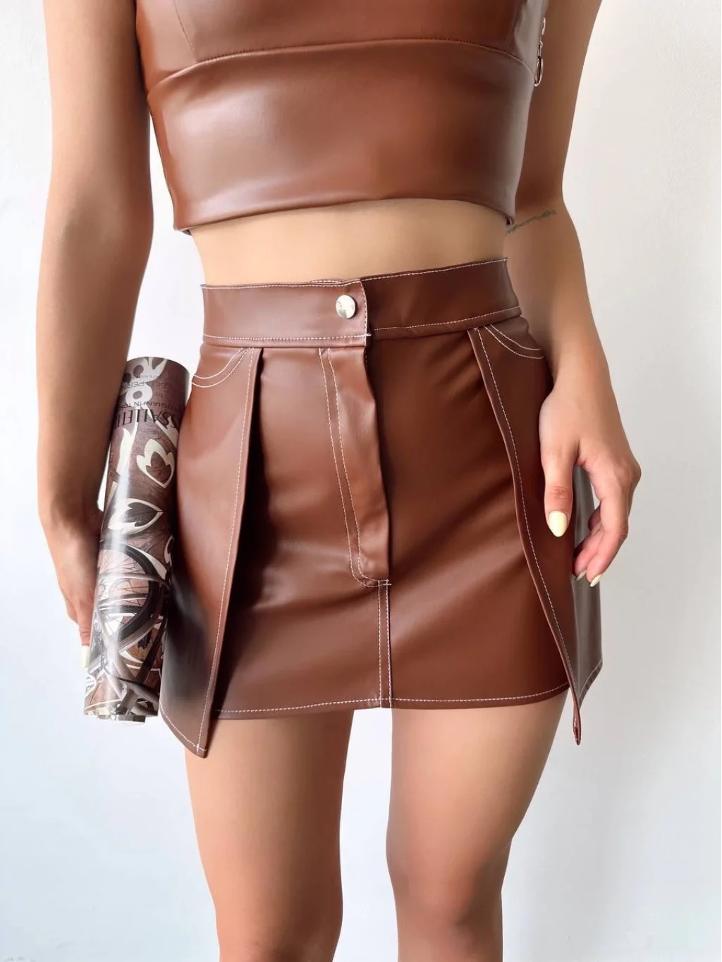 Şıklığı ve rahatlığı bir arada sunan Kontrast deri etek, gardırobunuzun vazgeçilmez parçası olmaya aday!