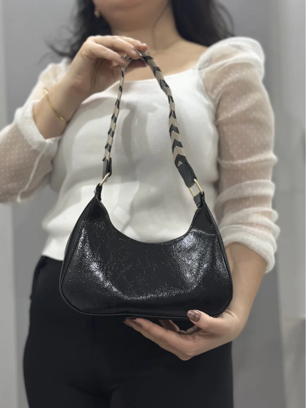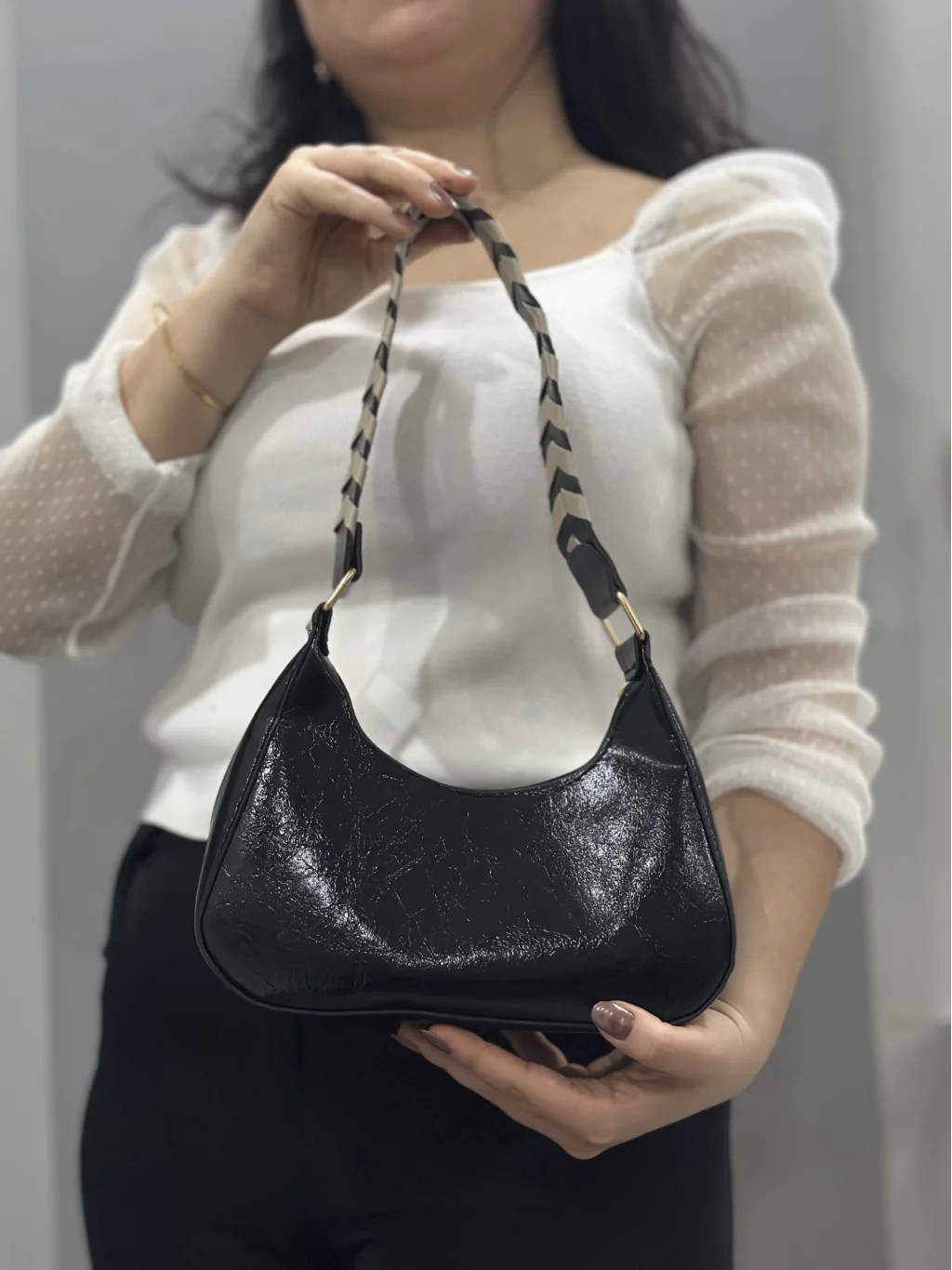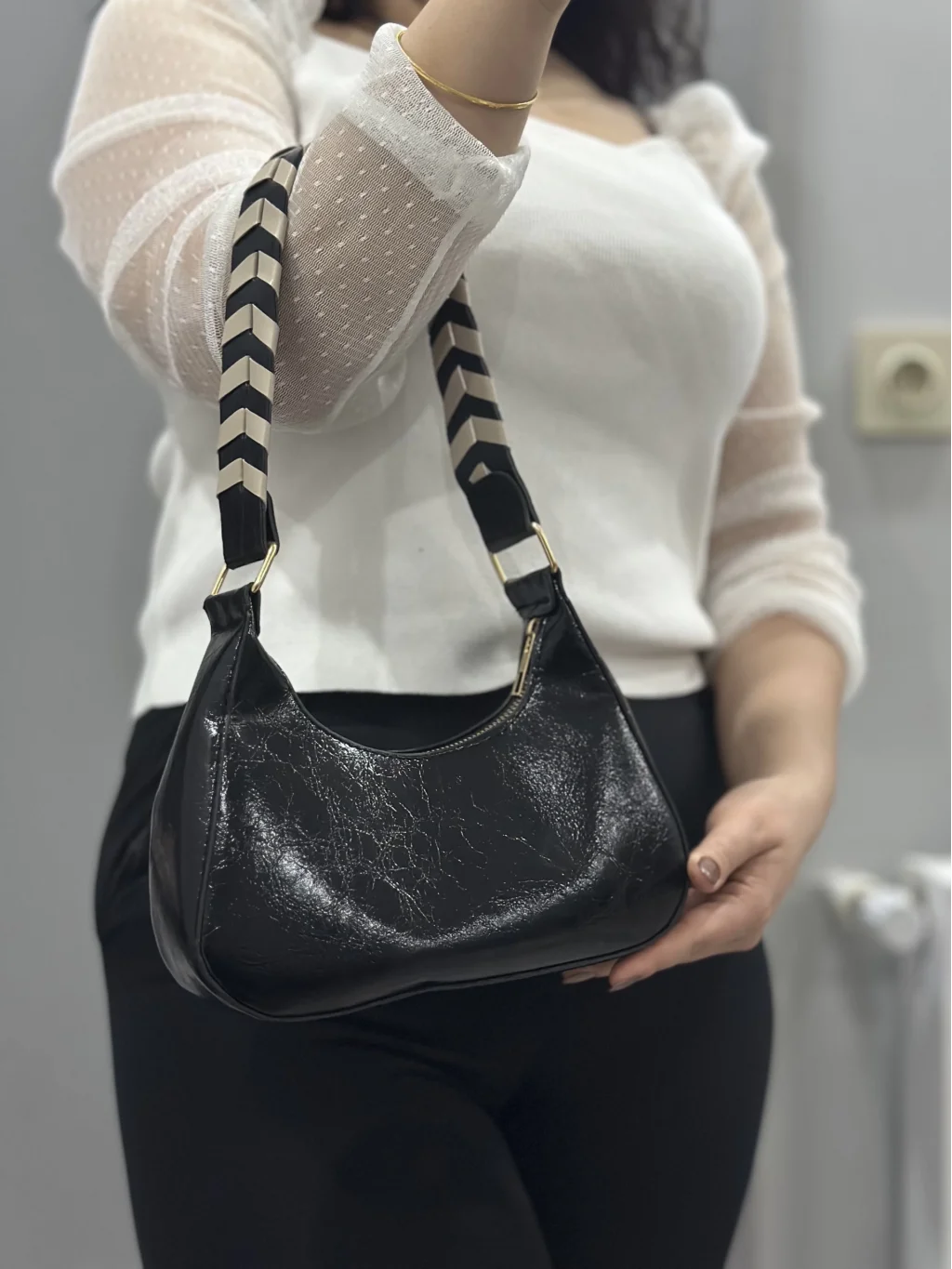 Şık ve zarif tasarımıyla öne çıkan Kraş siyah cilt çanta, her anınıza şıklık katacak bir aksesuar olacak. İster günlük kullanımlarda ister özel davetlerde tercih edebileceğiniz bu çanta, şıklığı ve kullanışlılığı bir arada sunuyor.