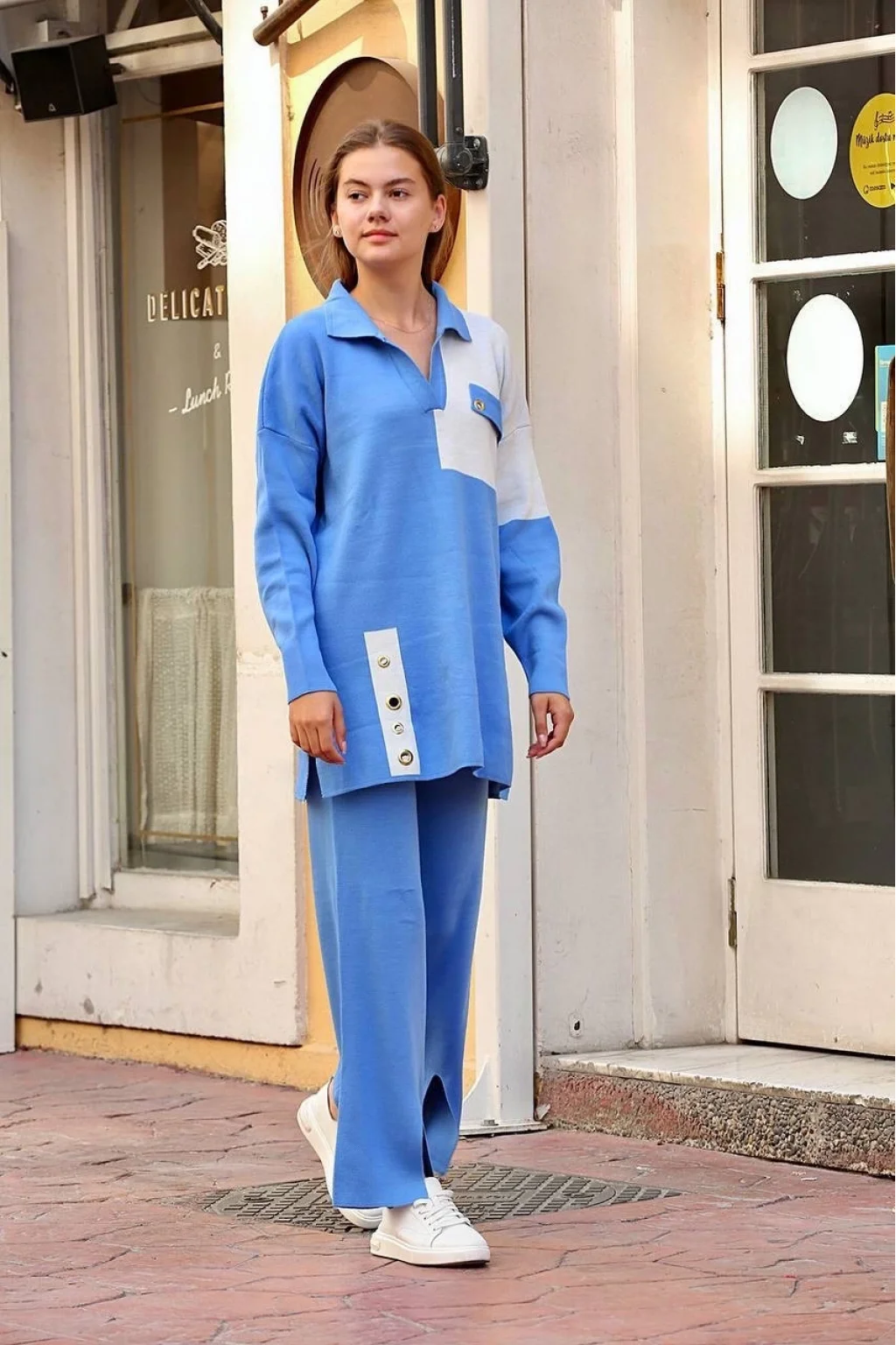 Gömlek Yaka Fitilli Salaş İkili Takım Buz Mavisi T4300