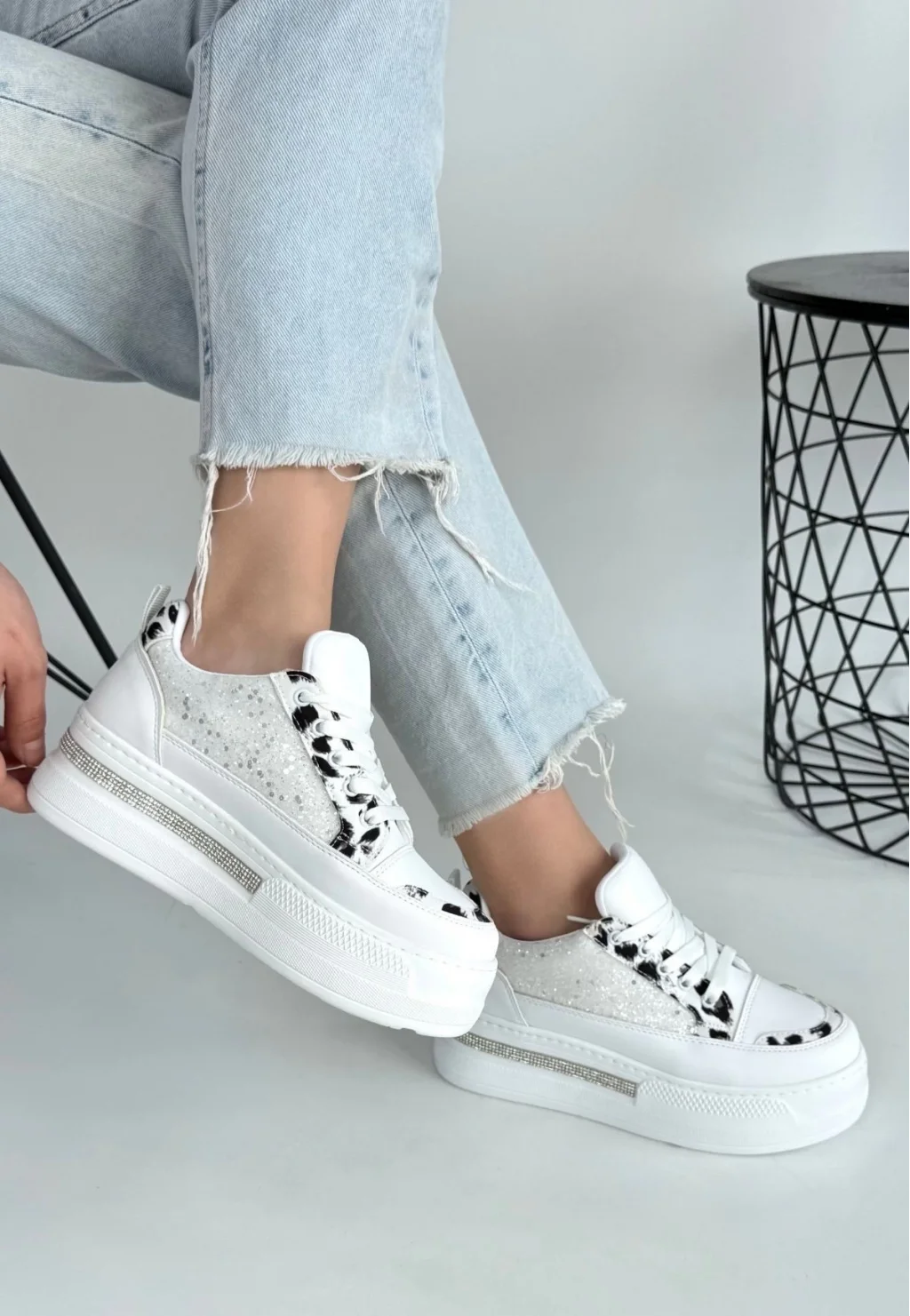 Lawin Beyaz Cilt Beyaz Simli Bağcıklı Spor Ayakkabı