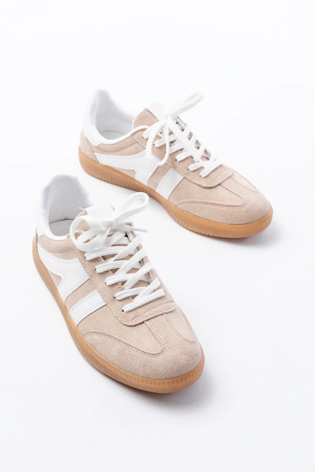 Finna Bej Cilt Bağcıklı Spor Ayakkabı