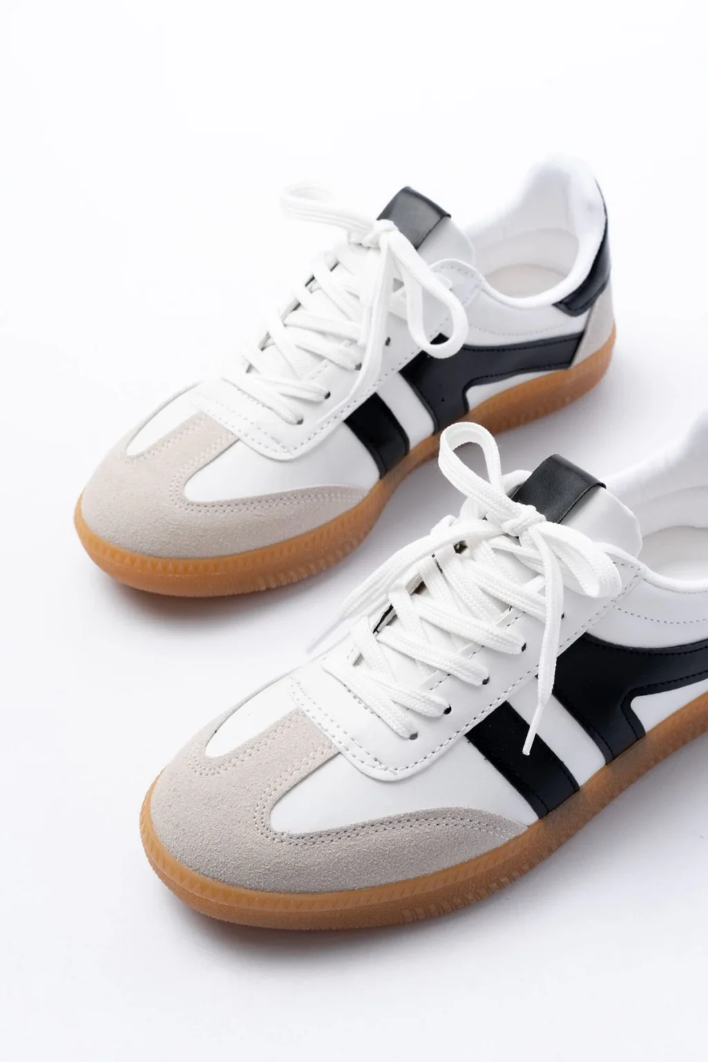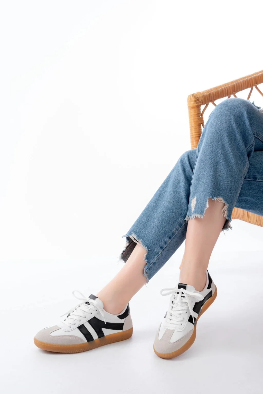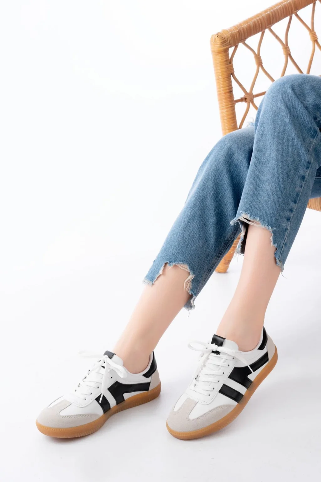Jowen Beyaz Cilt Siyah Detaylı Bağcıklı Spor Ayakkabı