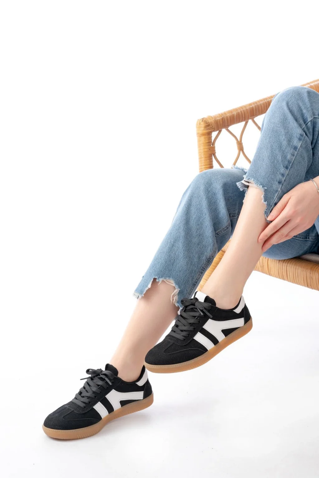 Jowen Beyaz Cilt Siyah Detaylı Bağcıklı Spor Ayakkabı