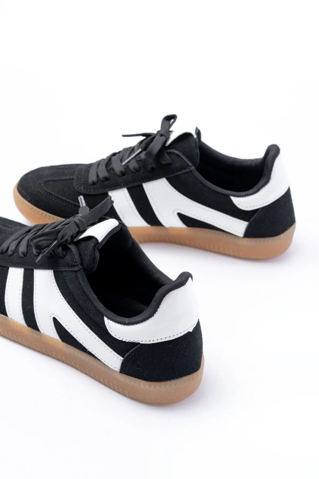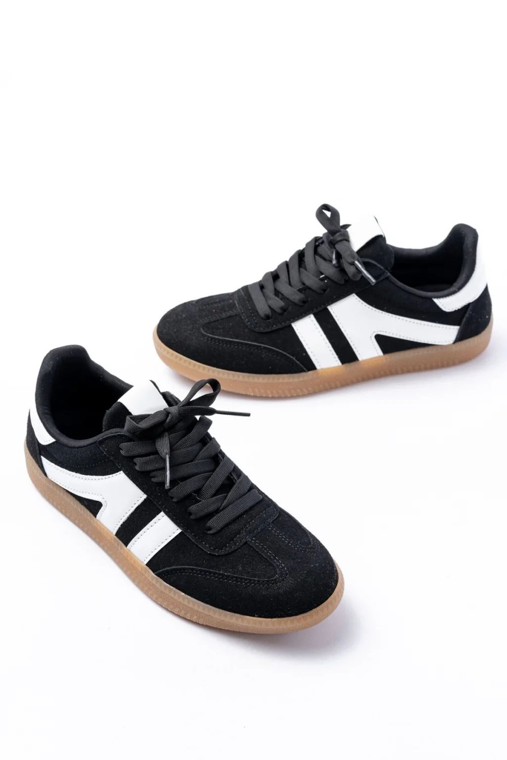 Natte Siyah Cilt Bağcıklı Spor Ayakkabı