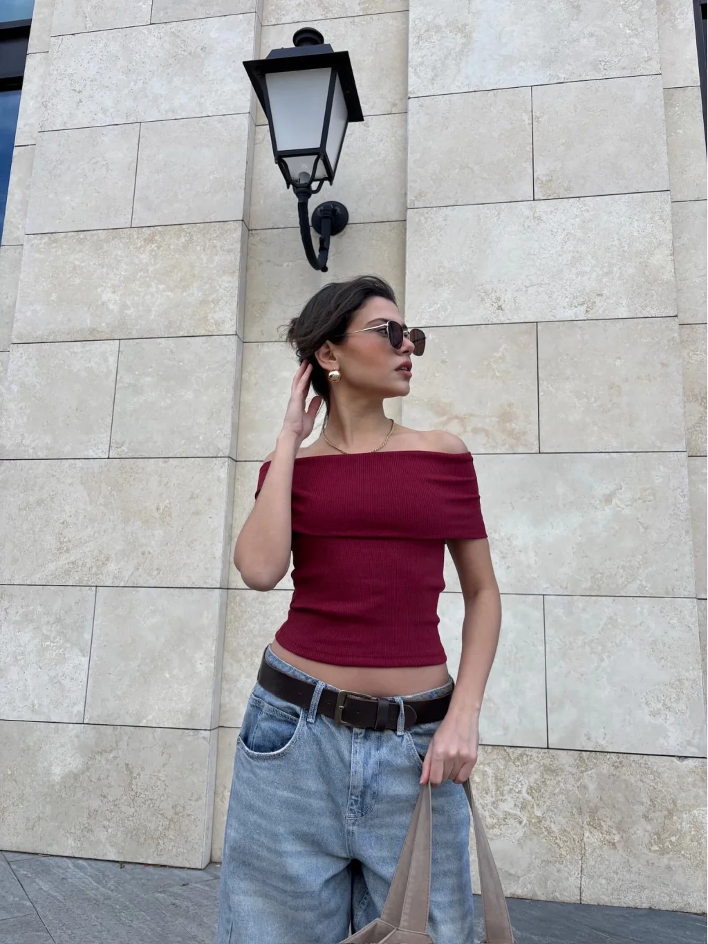 Günlük kullanıma uygun olan bu bluz, denim pantolonlarınızdan eteklerinize kadar birçok kombinasyon için idealdir. KAZAX Madonna yaka sıfır kol bluzu şimdi keşfedin!