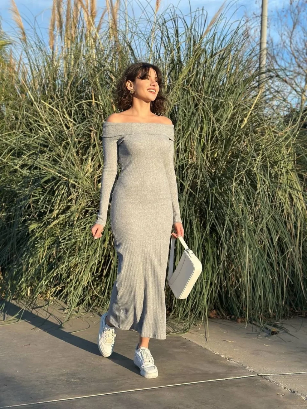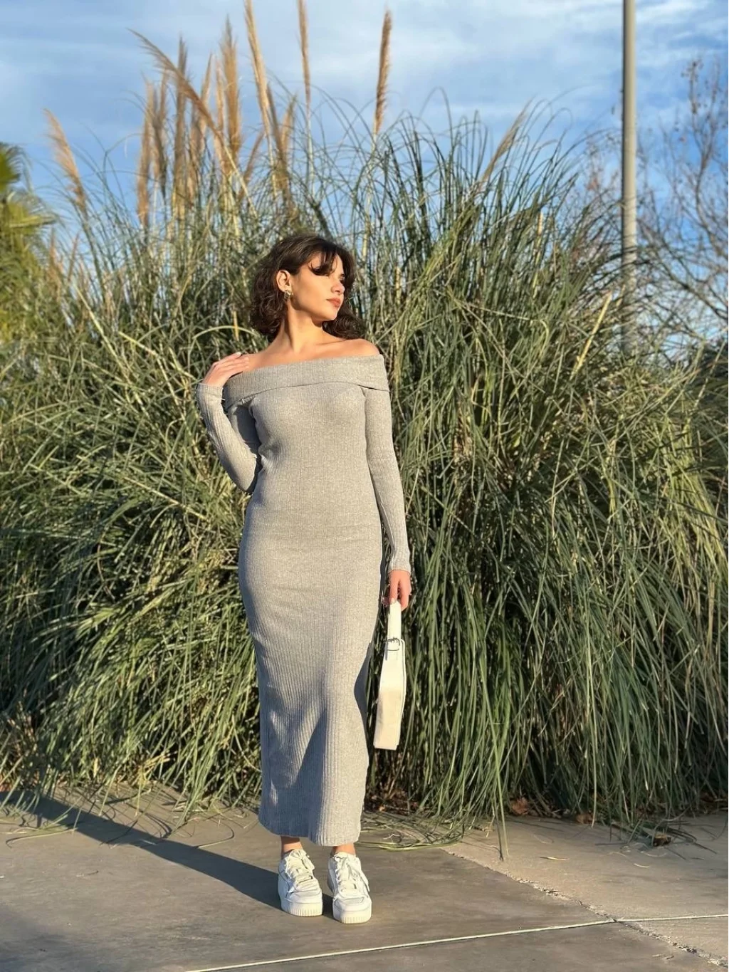 Bu Madonna yaka uzun elbise ile şıklığınızı ve konforunuzu bir arada bulacaksınız. Şimdi sipariş verin!