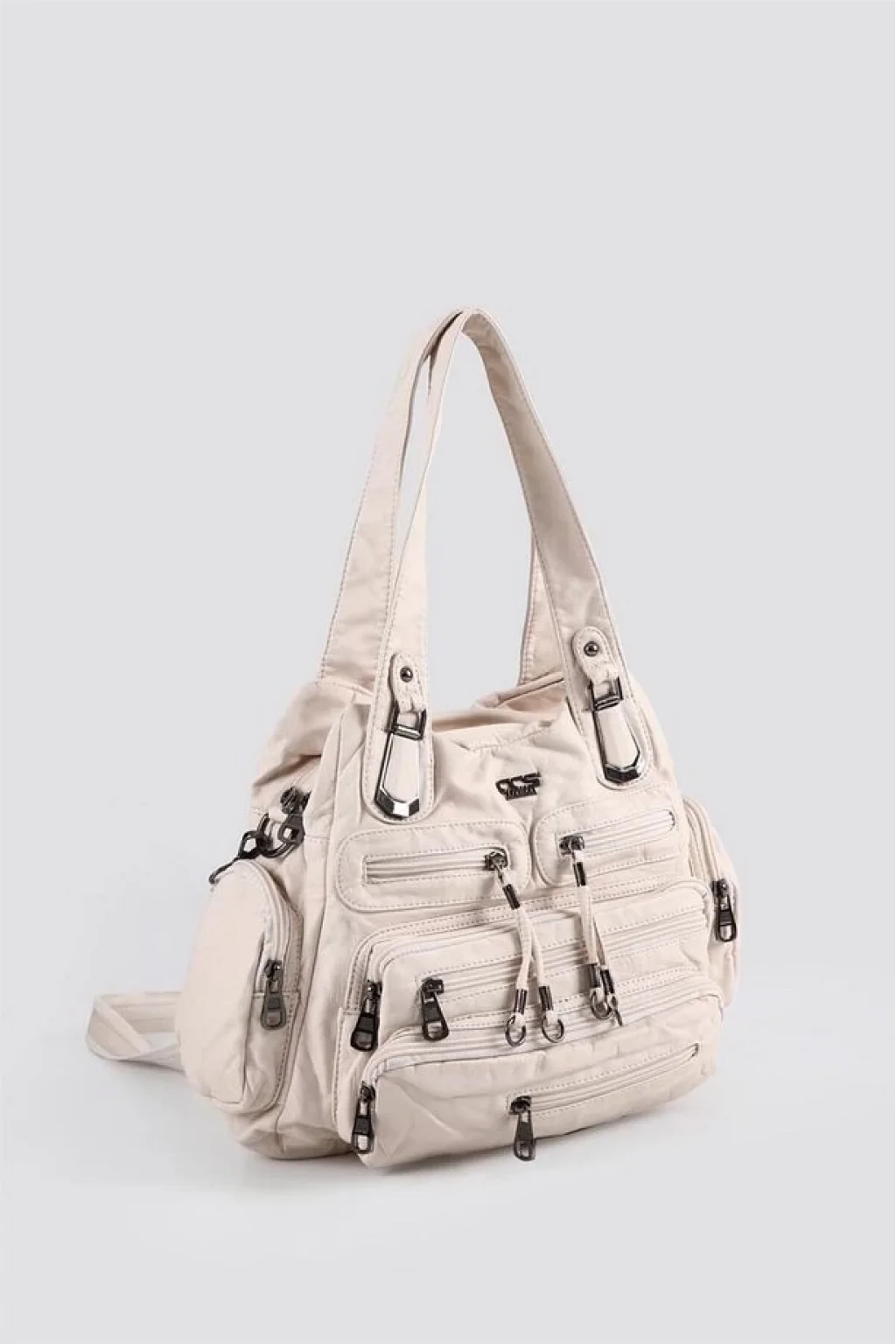 şıklığı ve fonksiyonelliği bir arada sunan zarif bir kadın omuz çantasıdır. Yıkama deri malzemesi, çantaya sofistike bir hava katarken aynı zamanda uzun süreli kullanım için dayanıklıdır. Geniş iç hacmi, eşyalarınızı düzenli bir şekilde taşımanıza olanak tanırken, modern tasarımı ile her ortamda şıklığınızı tamamlar.