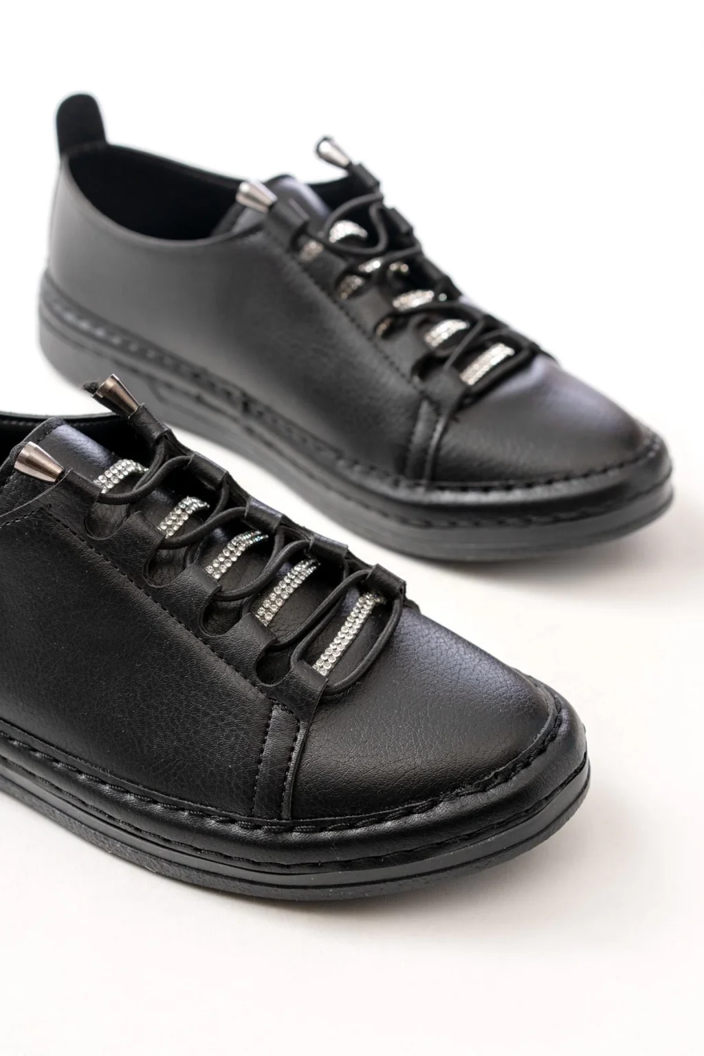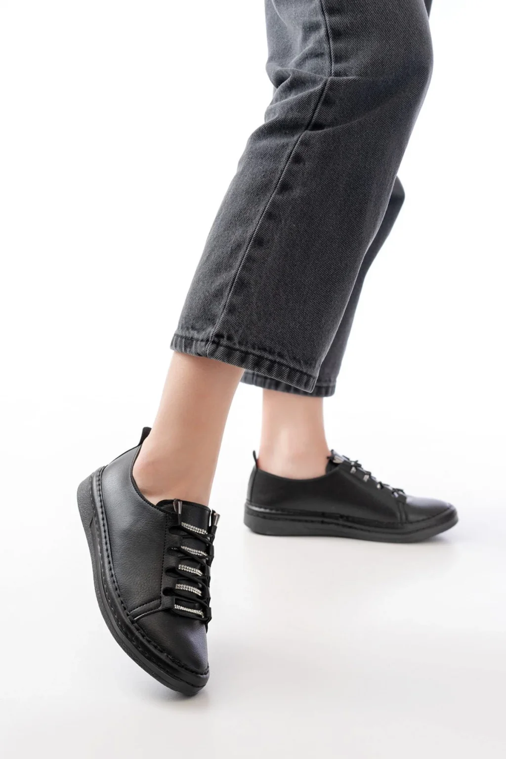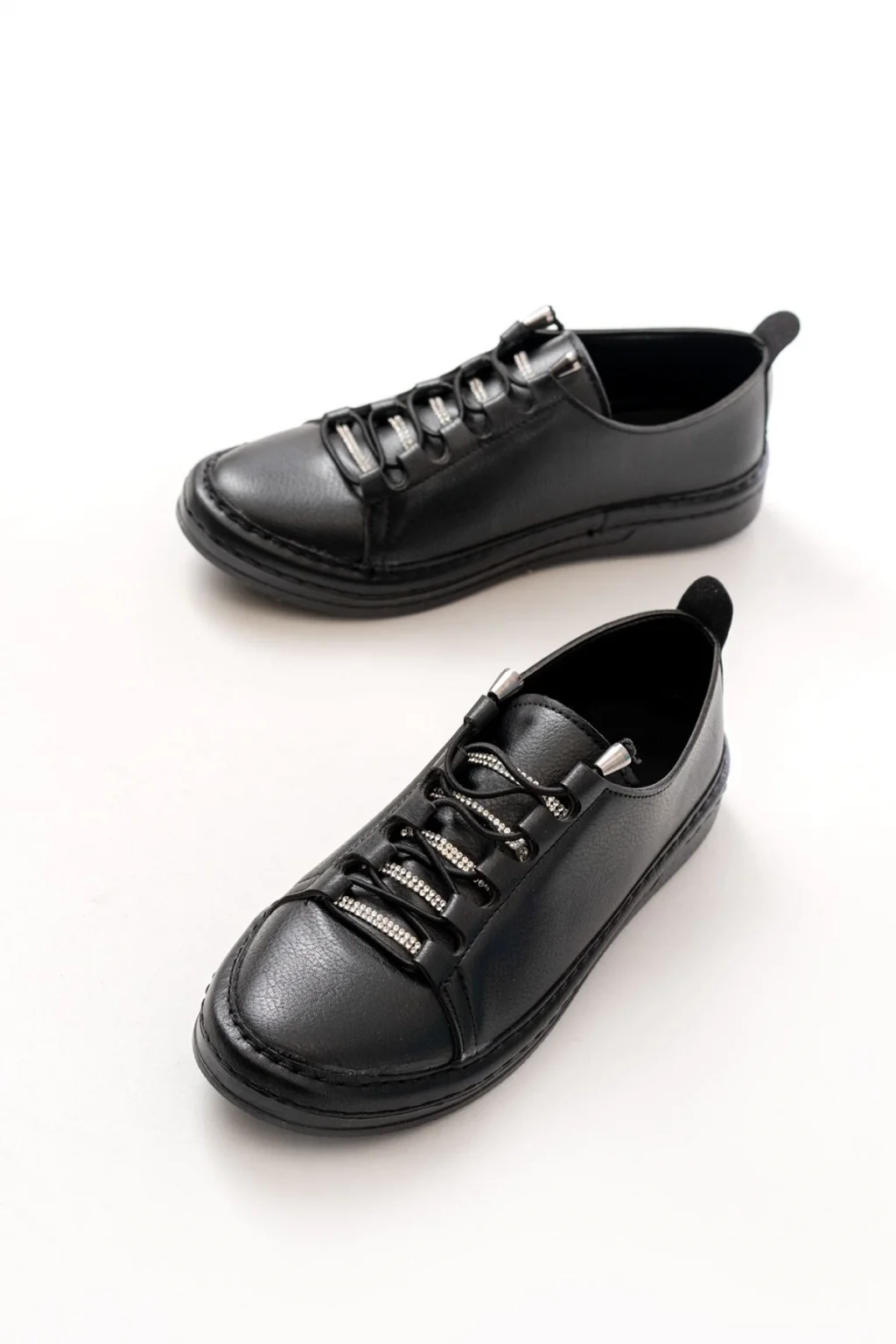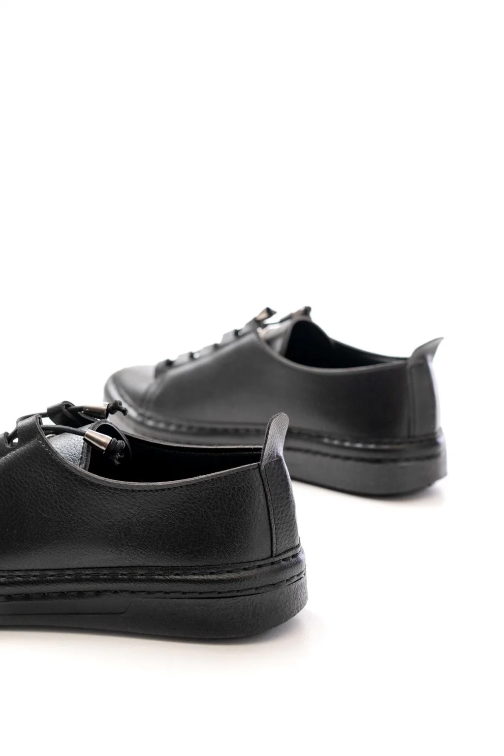 Natte Siyah Cilt Bağcıklı Spor Ayakkabı