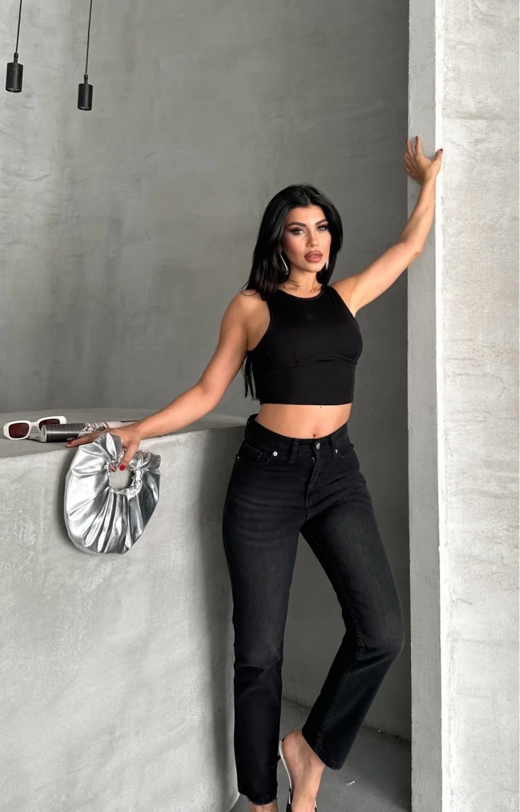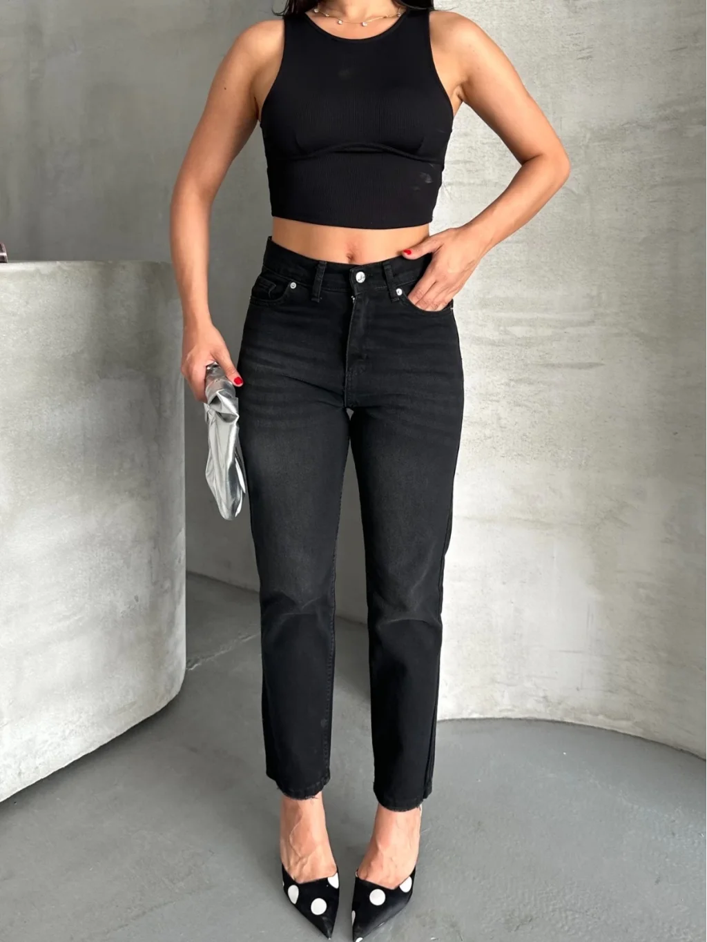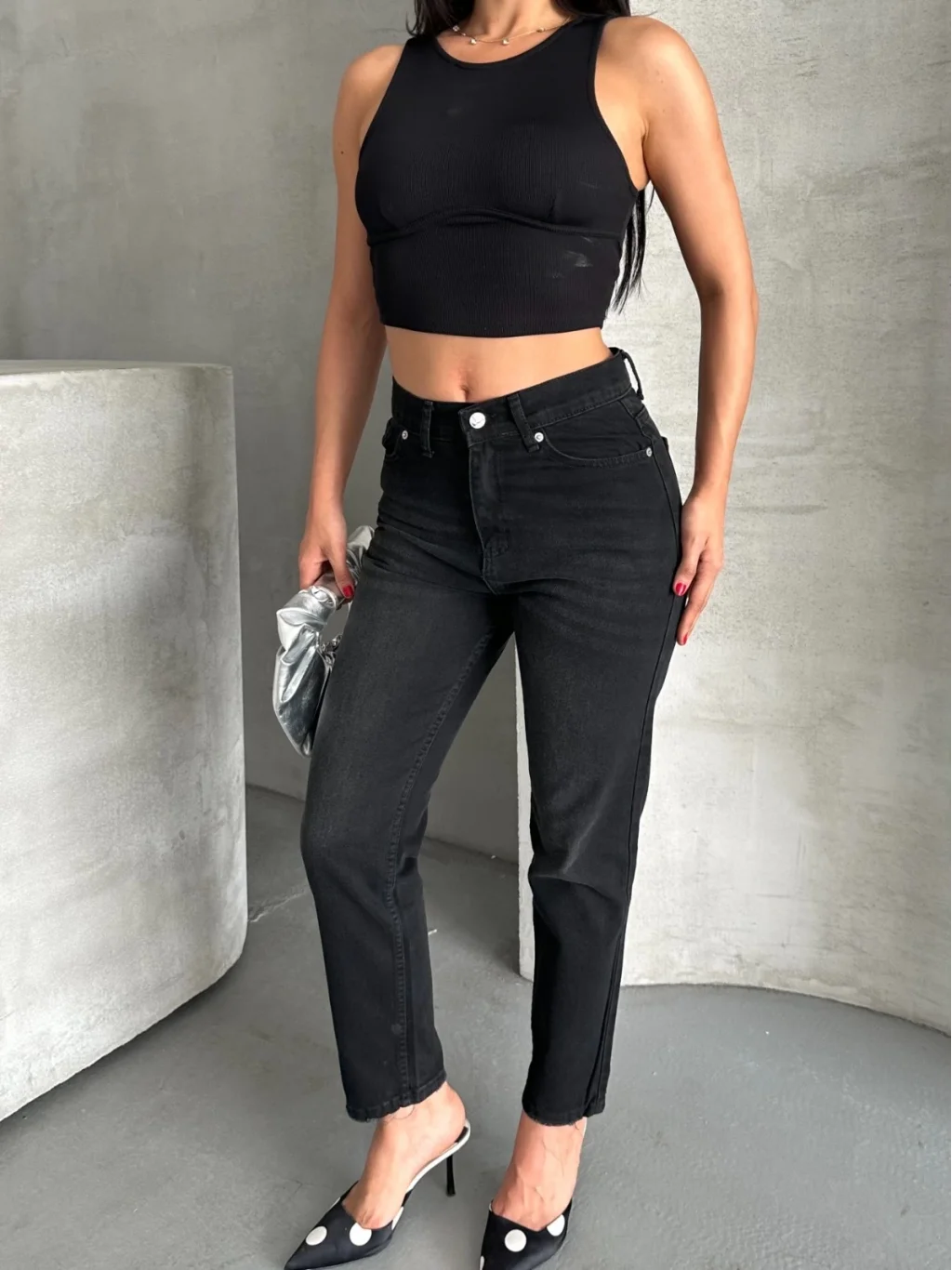 Mom fit enzim bıyıklı taş yıkama siyah jeans pantolon, şıklığı ve rahatlığı bir arada sunar. Hem günlük kullanıma hem de özel anlara uygun olan bu pantolonla tarzınızı konuşturabilirsiniz.