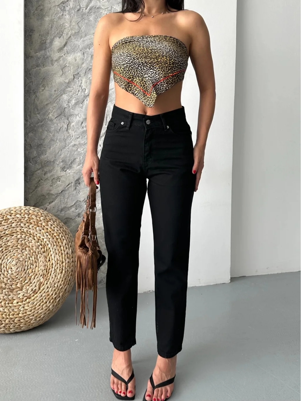 Yüksek bel tasarımı ve geniş paça detayıyla şıklığı ve rahatlığı bir arada sunan Mom Fit Enzim Taş Yıkama Jeans Pantolon Siyah D2006, gardırobunuzun vazgeçilmezi olmaya aday.