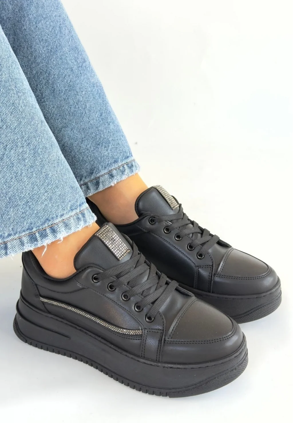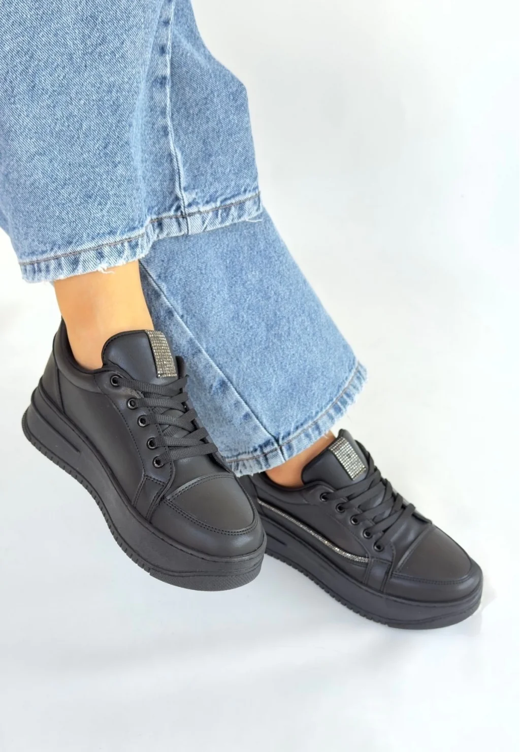 Natte Siyah Cilt Bağcıklı Spor Ayakkabı