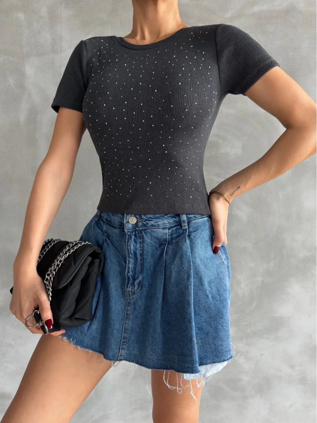 Şıklık ve rahatlığı aynı anda sunan Önü Taşlı Antrasit Bluz S3512, gardırobunuzun vazgeçilmezi olmaya aday!