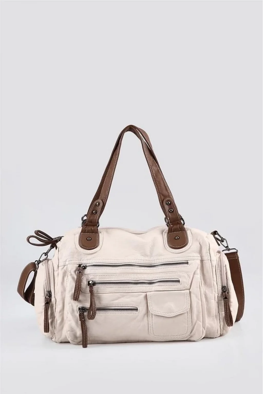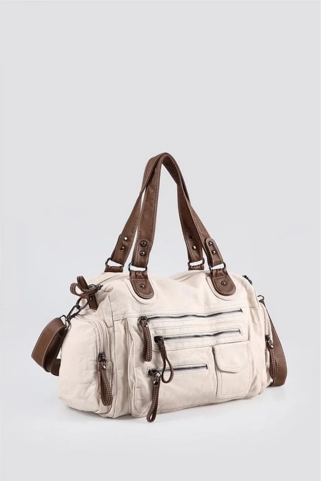 Yıkama deri dokusu, zamanla daha da güzelleşerek kendine özgü bir patina kazanır. Çantanın geniş yapısı, eşyalarınızı düzenli bir şekilde taşımanıza olanak tanırken, şık ve zarif tasarımıyla her ortamda göz alıcı bir görünüm elde etmenizi sağlar. Hem iş hayatında hem de günlük yaşantınızda rahatlıkla kullanabileceğiniz bu omuz çantası, tarzınızı tamamlayacak mükemmel bir seçimdir.