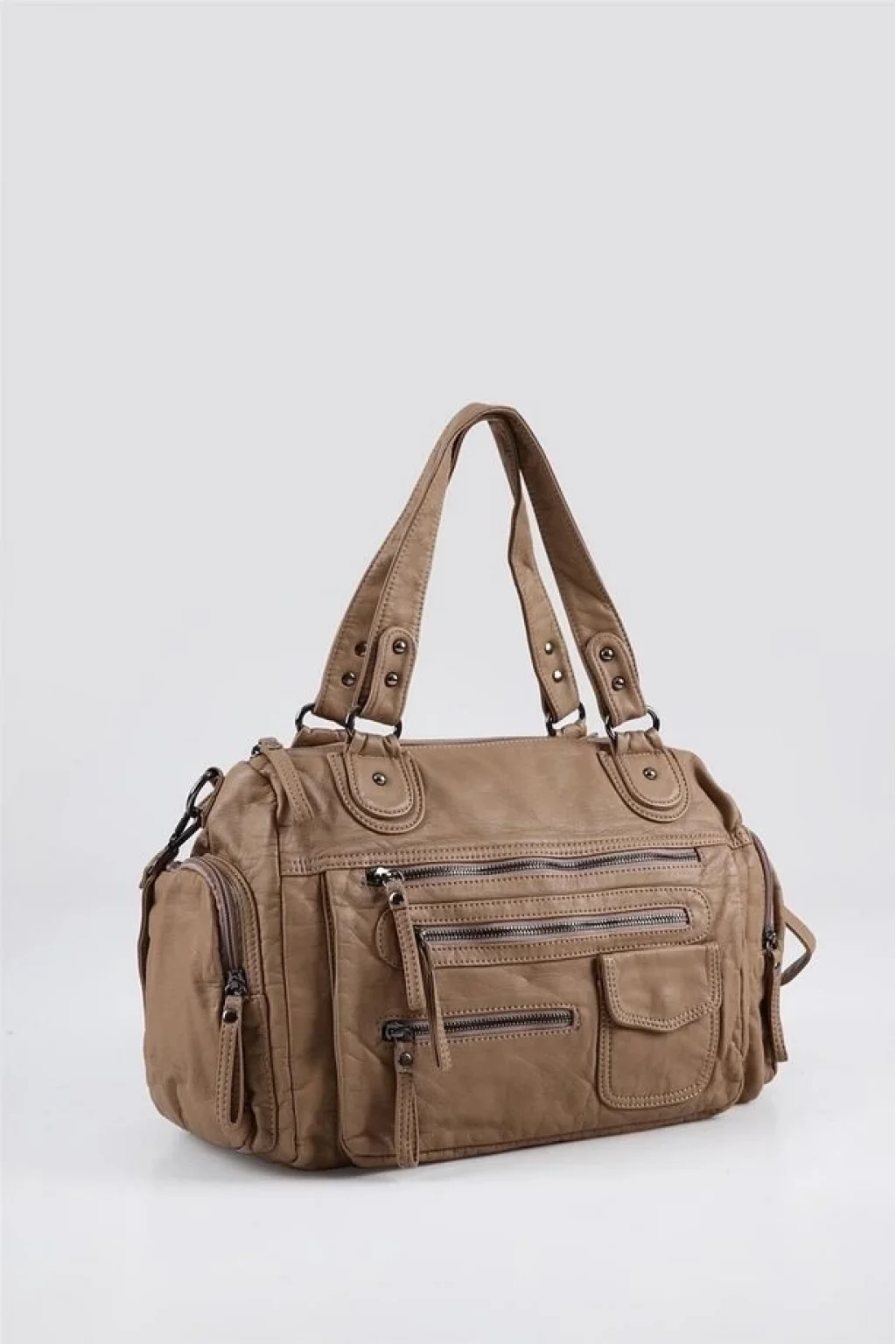 Yıkama deri dokusu, zamanla daha da güzelleşerek kendine özgü bir patina kazanır. Çantanın geniş yapısı, eşyalarınızı düzenli bir şekilde taşımanıza olanak tanırken, şık ve zarif tasarımıyla her ortamda göz alıcı bir görünüm elde etmenizi sağlar. Hem iş hayatında hem de günlük yaşantınızda rahatlıkla kullanabileceğiniz bu omuz çantası, tarzınızı tamamlayacak mükemmel bir seçimdir.