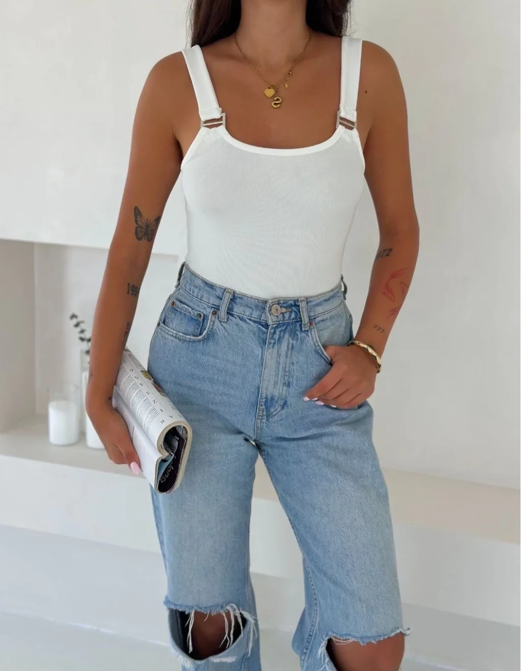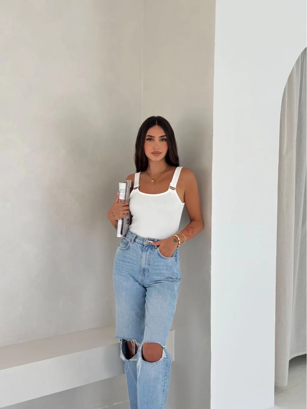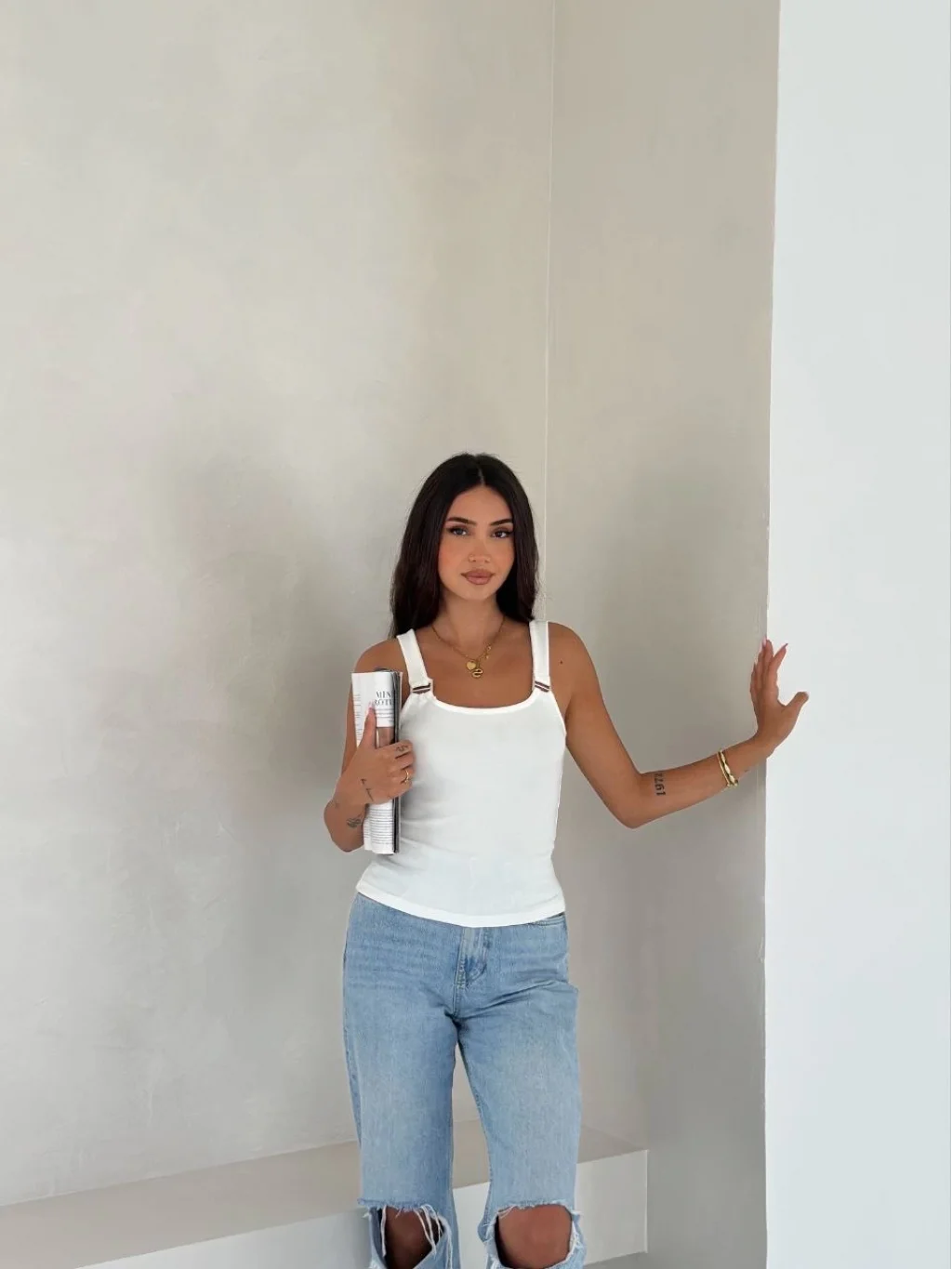 Ottoman toka askılı bluz beyaz s4194, şıklığı ve rahatlığı bir arada sunar.
