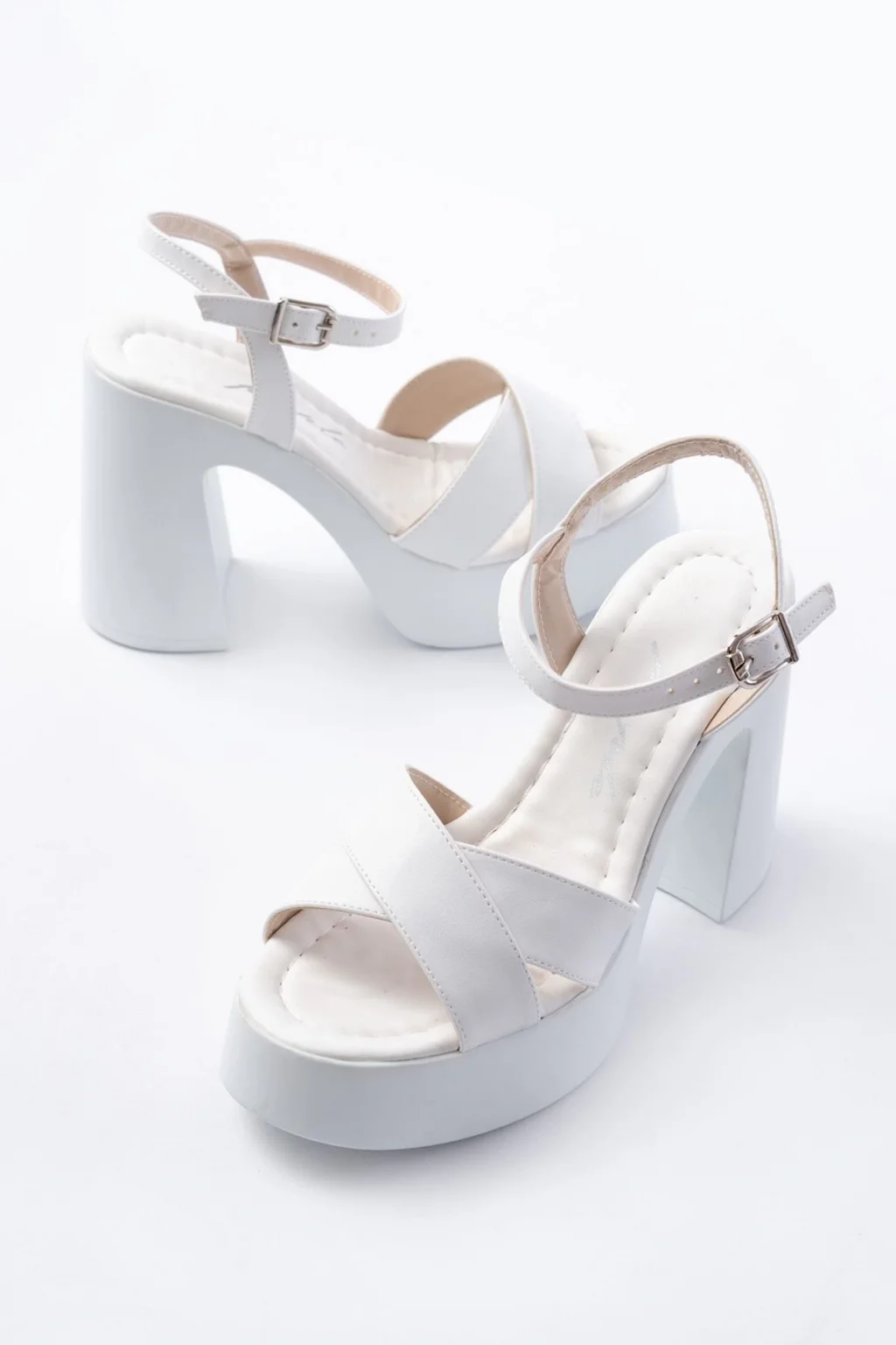 Toran Beyaz Rugan Siyah Süet Detaylı Topuklu Ayakkabı