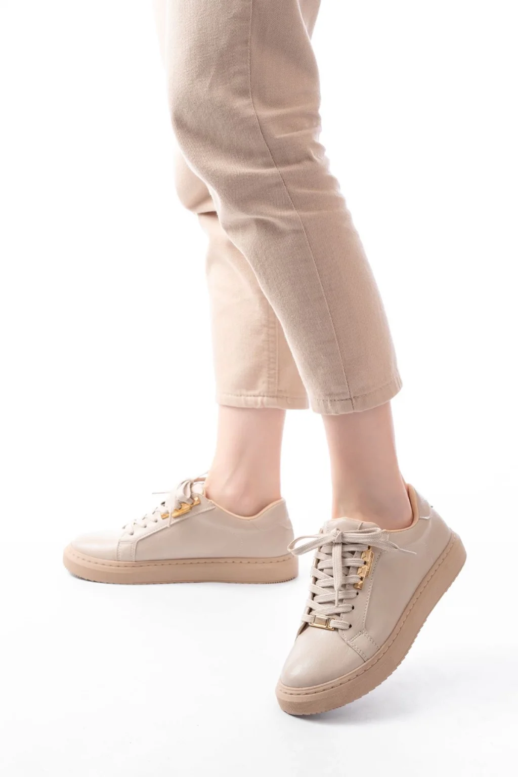Emwa Bej Cilt Bağcıklı Spor Ayakkabı