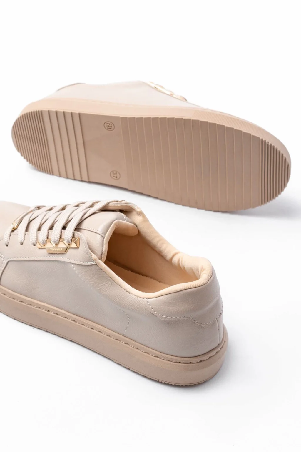 Finna Bej Cilt Bağcıklı Spor Ayakkabı