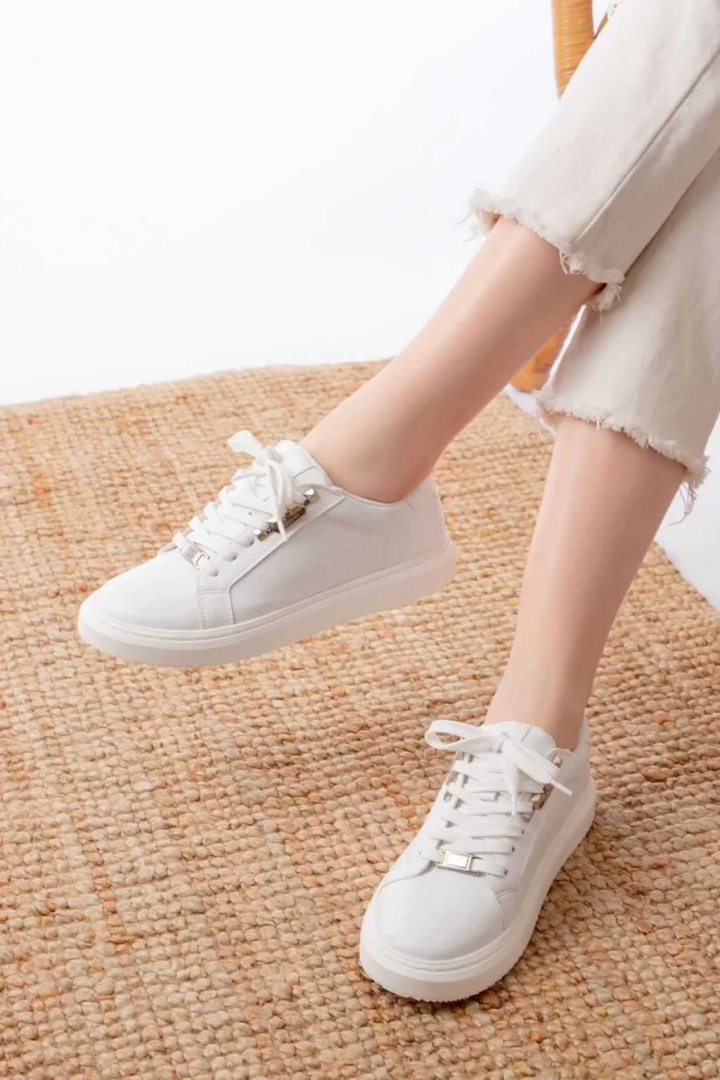 Finna Beyaz Cilt Bağcıklı Spor Ayakkabı